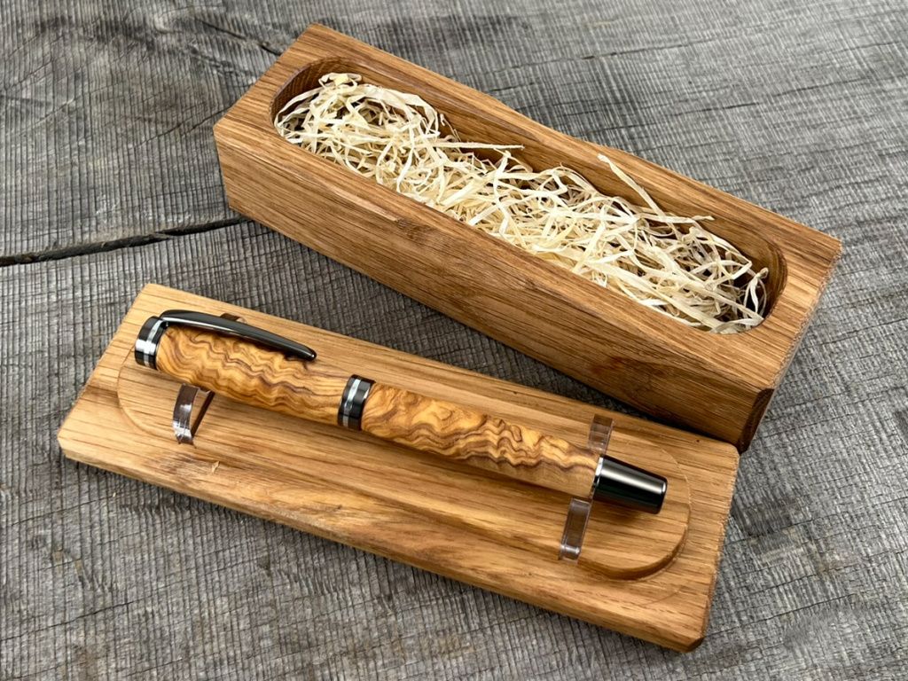 Ein hochwertiger, handgefertigter Stift verdient eine passende Verpackung. Deshalb biete ich die Möglichkeit, eine massive Holzbox für einen Stift zu wählen, die den Wert des Produkts unterstreicht und den Stift in ein luxuriöses, persönliches und zeitloses Geschenk verwandelt.