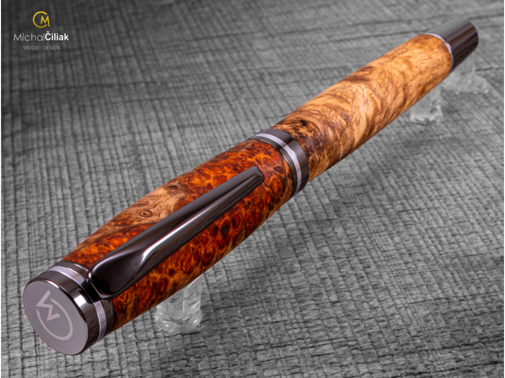 Ručně vyrobeno Ambonea Burl wood - varianta Brilliance s kovovými komponenty barvy gunmetal chrome