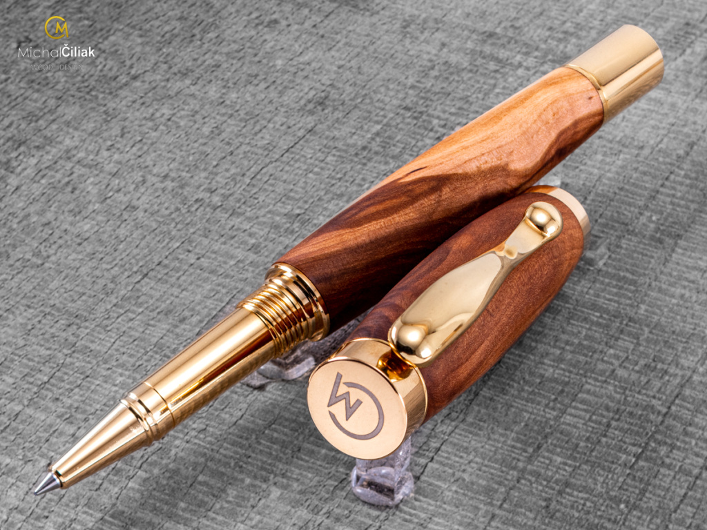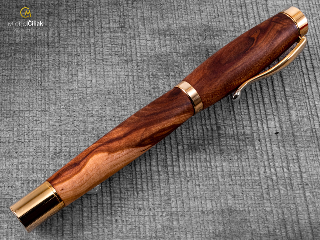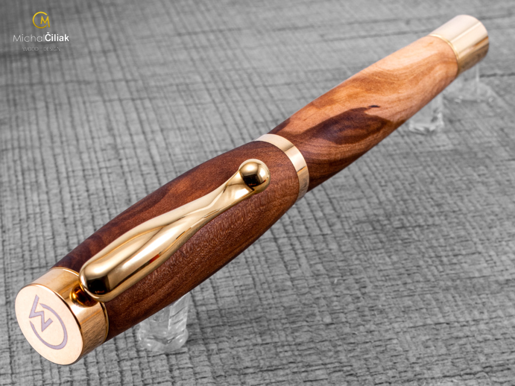 Ručně vyrobeno z českého jabloňového dřeva, jehož jádro - ze kterého je pero vyrobeno - má světle až tmavě hnědou barvu s výraznější kresbou s barevnými kontrasty. Kombinace tmavě a světle hnědé barvy dělá z pera velkého elegána s potřebnou dávkou výraznosti.