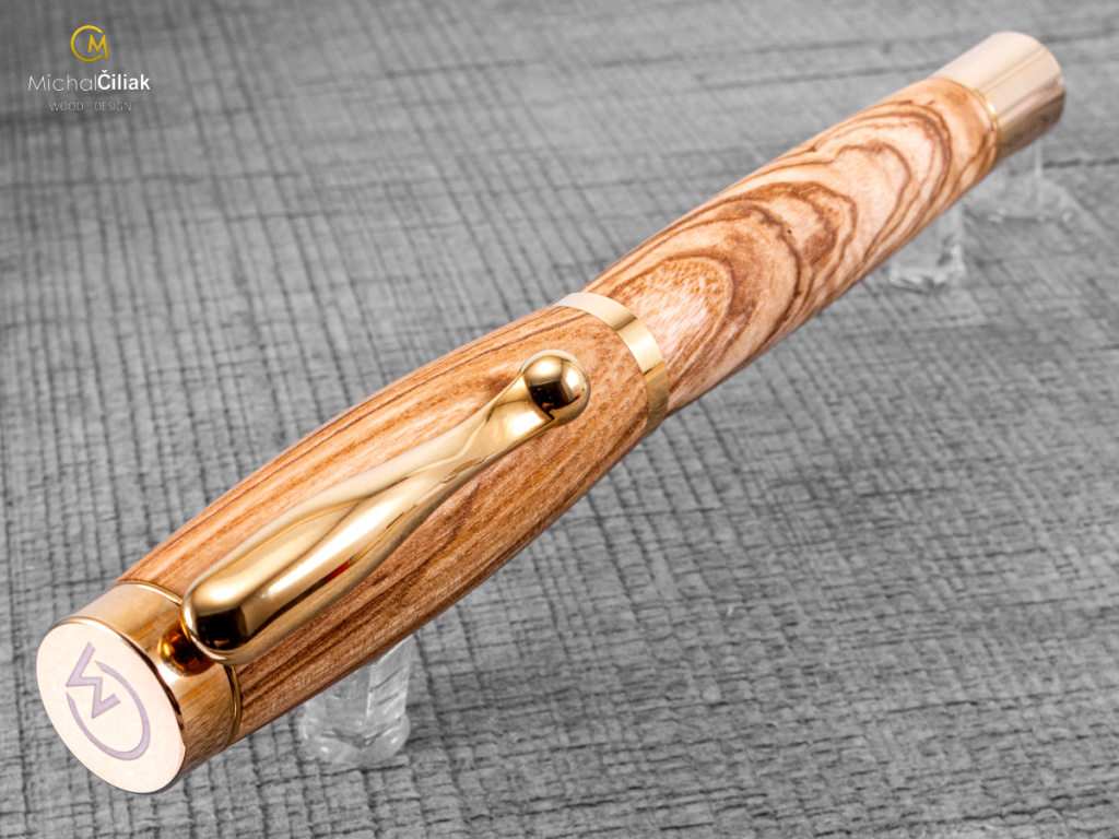 Ručně vyrobeno z českého jasanu, jehož dřevo je tvrdé a zároveň velmi pružné, patří k nejpružnějším českým dřevinám. Jádro jasanu je světle hnědé a má velmi výrazné letokruhy. Z tohoto důvodu je výběr dřeva velmi důležitý, protože některé kusy jasanového dřeva mají letokruhy hodně zajímavě tvarované a toto pero je toho důkazem. Vypadá až uměle, ale věřte, že jeho dřevo je dílem přírody.