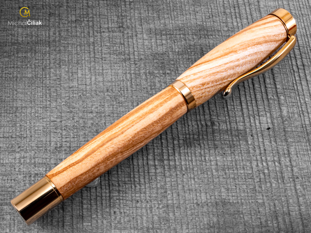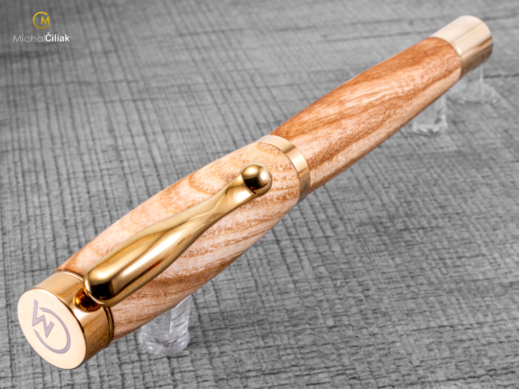 Ručně vyrobeno z českého jasanu, jehož dřevo je tvrdé a zároveň velmi pružné, patří k nejpružnějším českým dřevinám. Jádro jasanu je světle hnědé a má velmi výrazné letokruhy. Z tohoto důvodu je výběr dřeva velmi důležitý, protože některé kusy jasanového dřeva mají letokruhy hodně zajímavě tvarované a toto pero je toho důkazem. Vypadá až uměle, ale věřte, že jeho dřevo je dílem přírody.