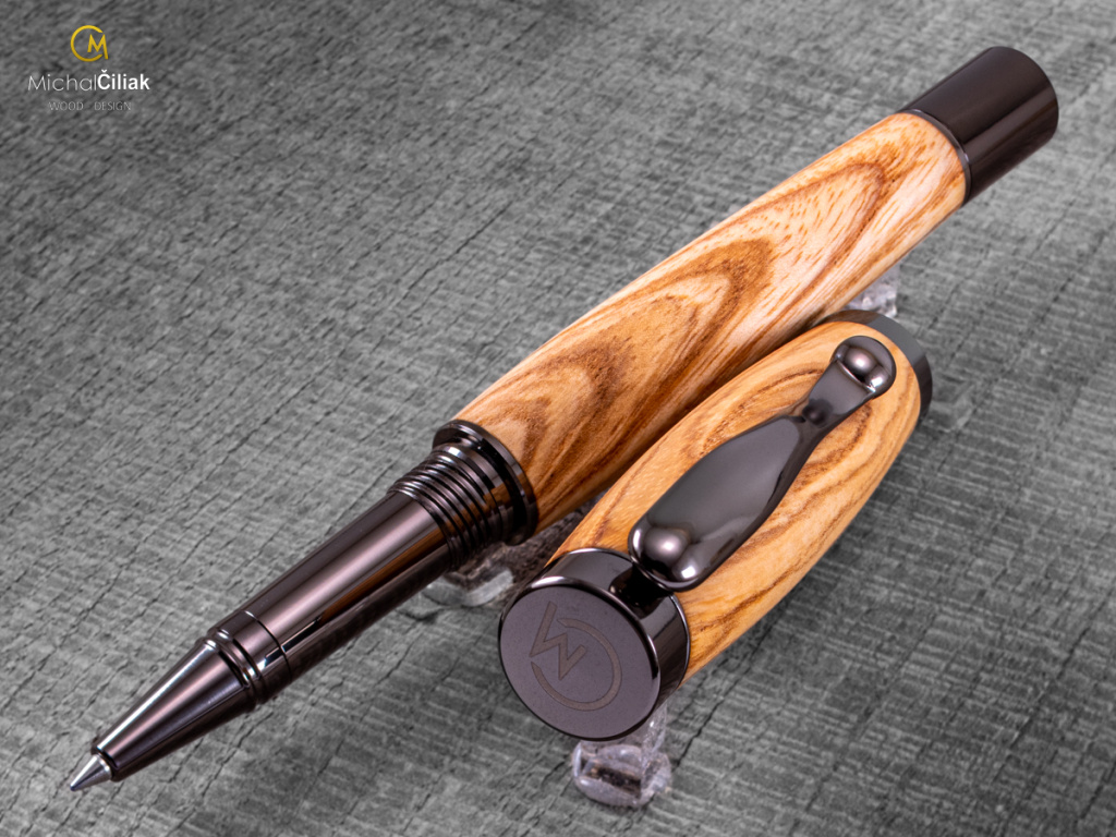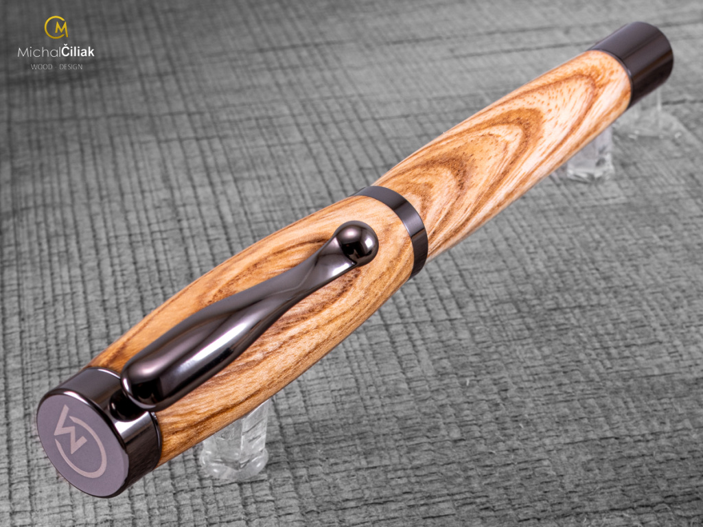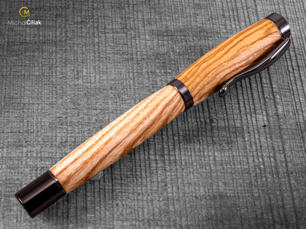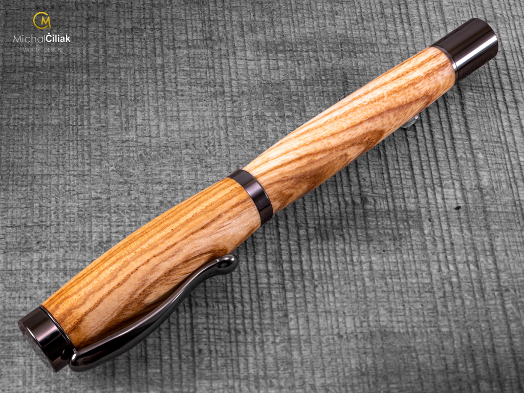 Ručně vyrobeno z českého jasanu, jehož dřevo je tvrdé a zároveň velmi pružné, patří k nejpružnějším českým dřevinám. Jádro jasanu je světle hnědé a má velmi výrazné letokruhy. Z tohoto důvodu je výběr dřeva velmi důležitý, protože některé kusy jasanového dřeva mají letokruhy hodně zajímavě tvarované a toto pero je toho důkazem. Vypadá až uměle, ale věřte, že jeho dřevo je dílem přírody.
