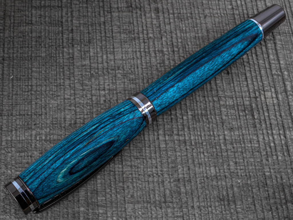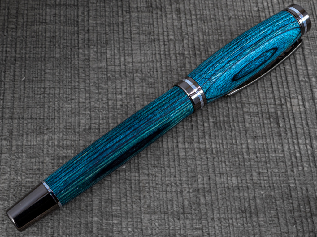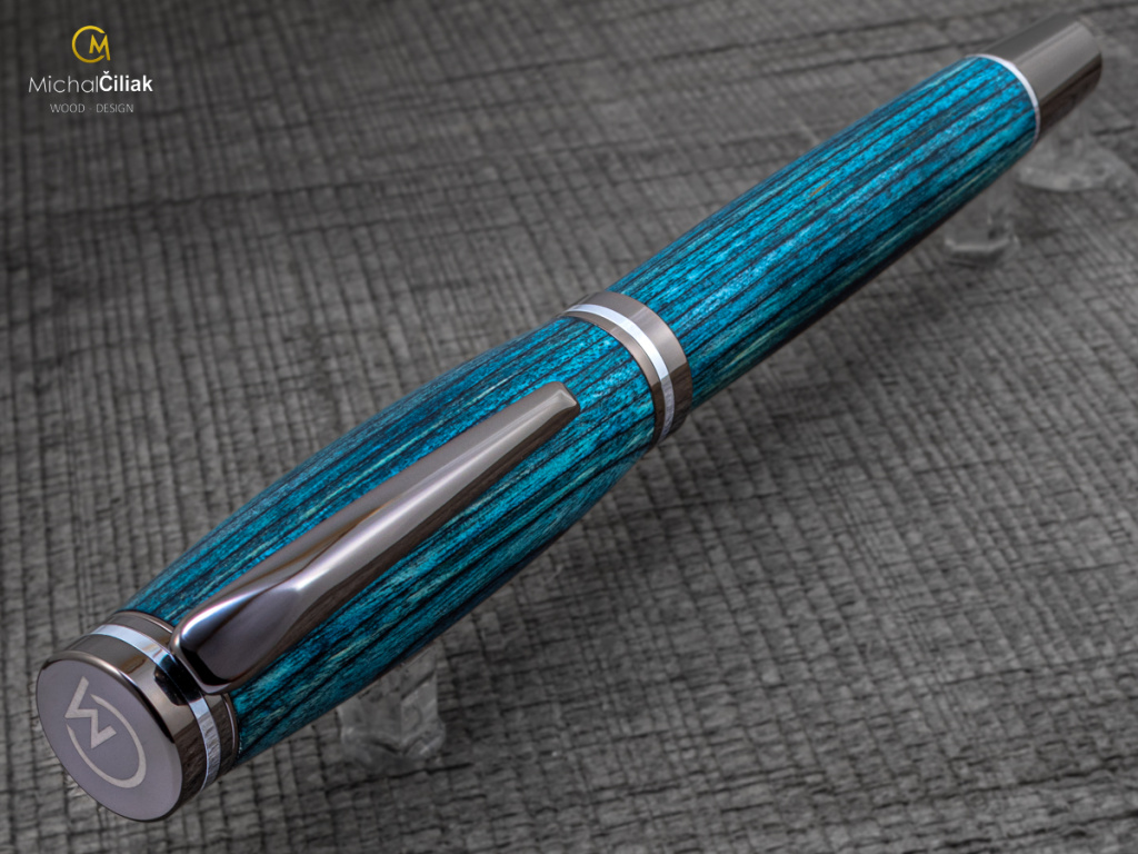 Pero je vyrobené z barvené dýhy, která je barvena postupně po jednotlivých vrstvách a ty jsou pak slepeny k sobě. Dá se ta dosáhnout velmi zajímavé struktury dřeva a vznikne tak opravdu originální kousek, který se jen tak nevidí. S perem z dýhy určitě okouzlíte, protože barva dřeva sice není vyloženě přírodní, za to ale opravdu nevšední a výjimečná.