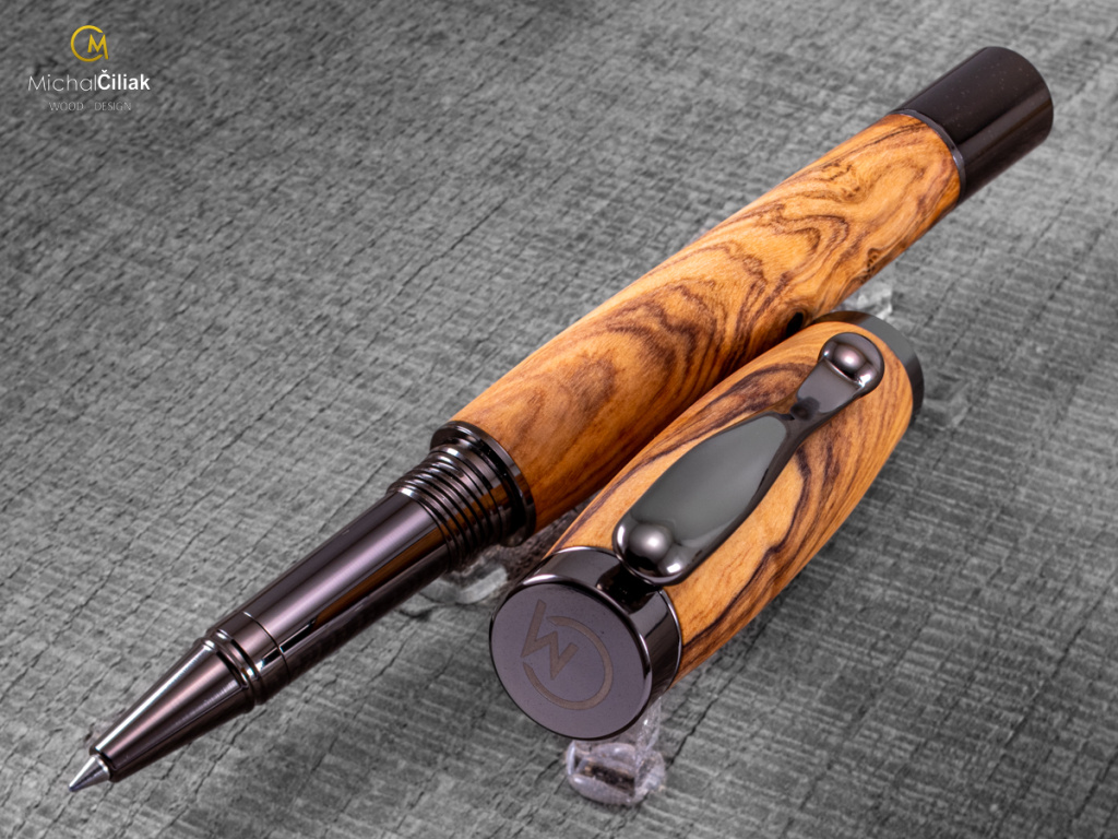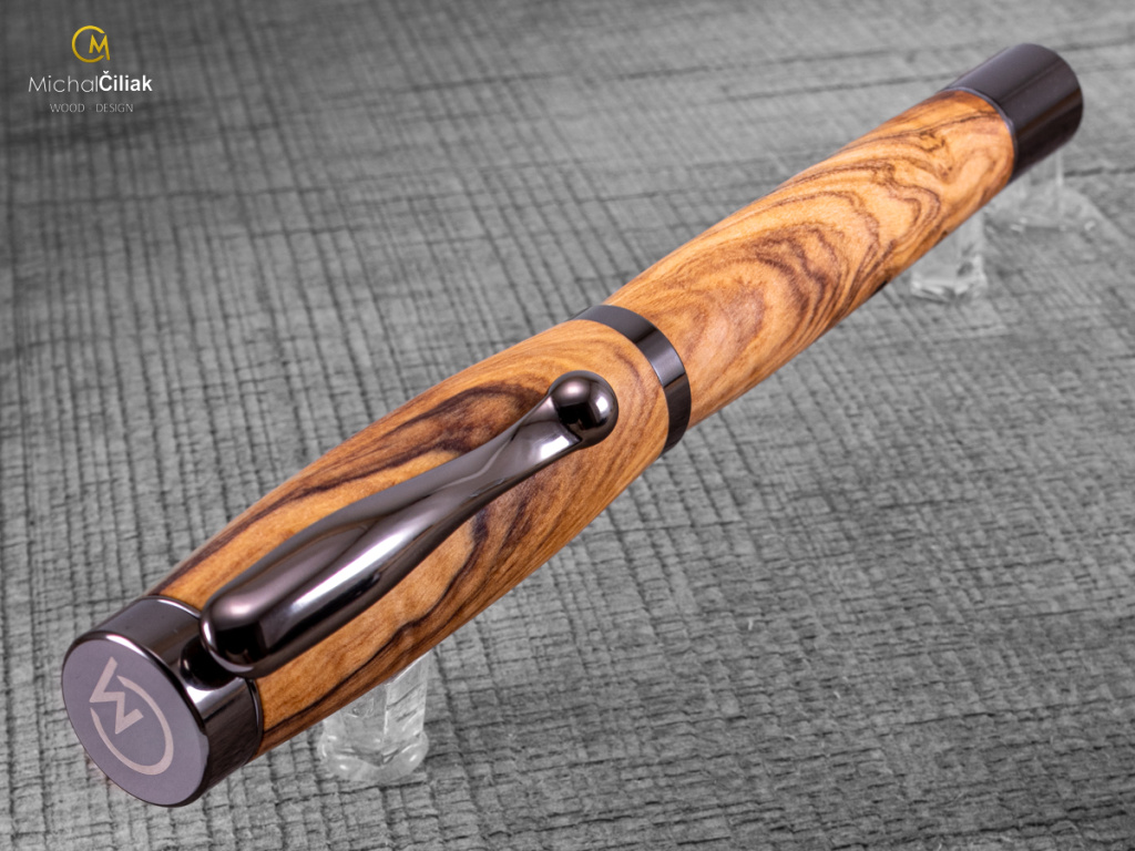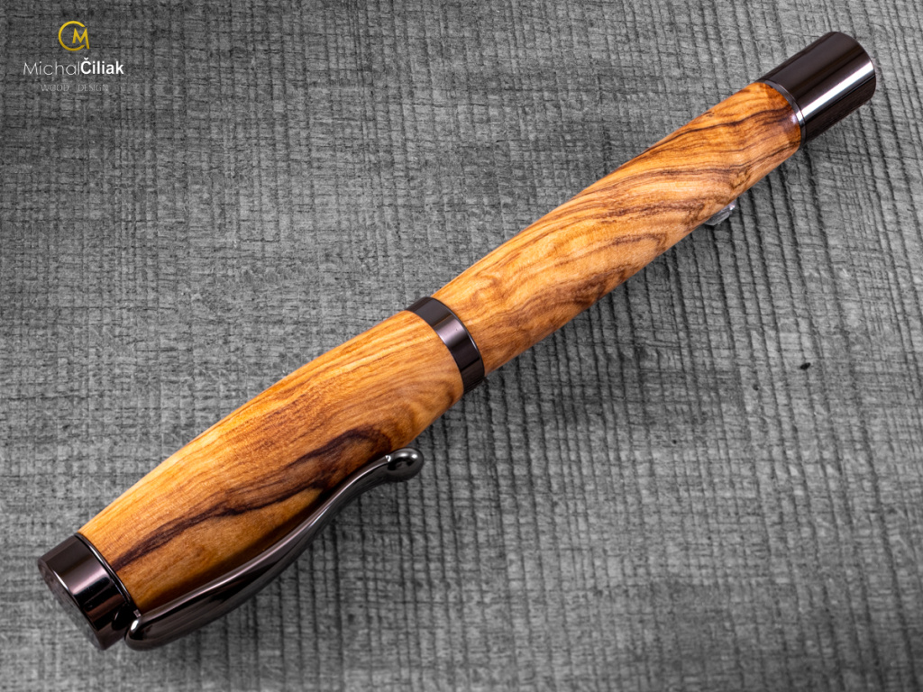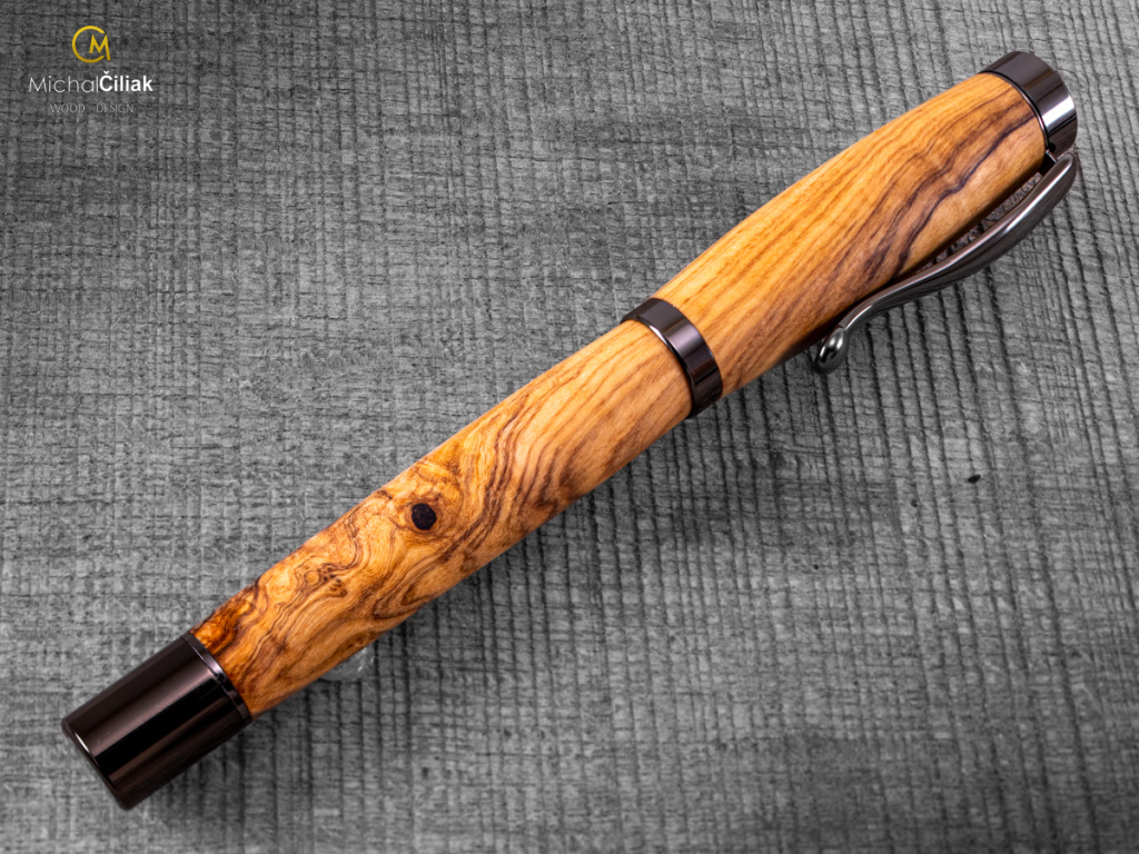 Ručně vyrobeno ze dřeva karpathoského olivovníku - varianta Elegant s kovovými komponenty barvy gunmetal