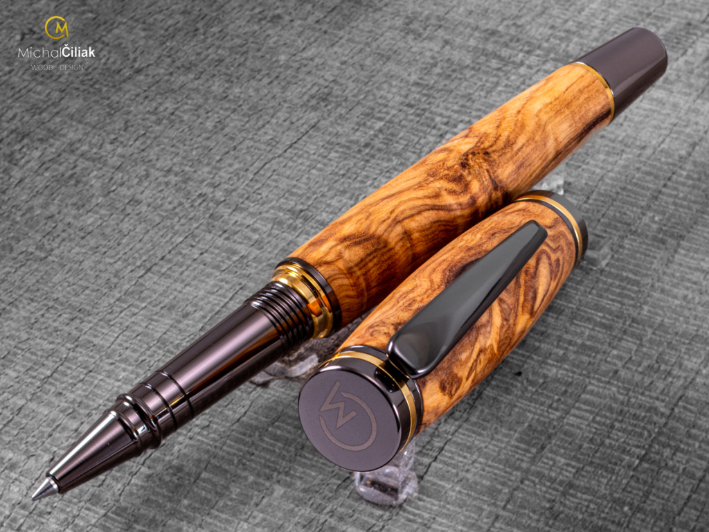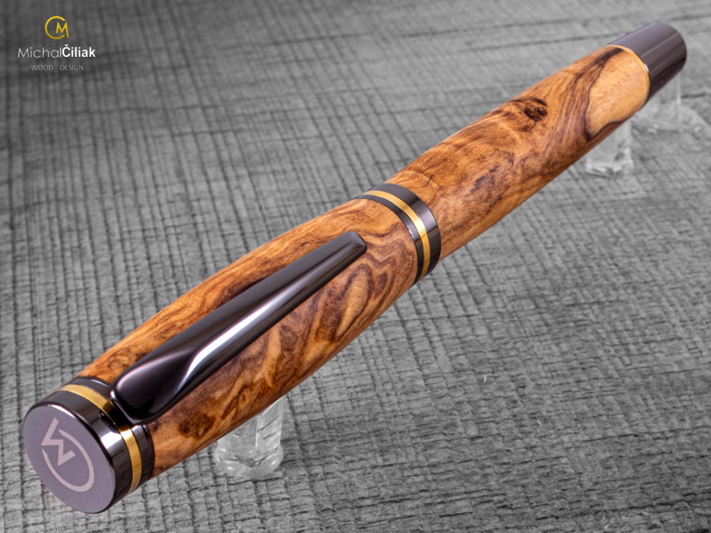 Ručně vyrobeno z olivovníku a barvené pryskyřice - varianta Brilliance s kovovými komponenty barvy gunmetal gold