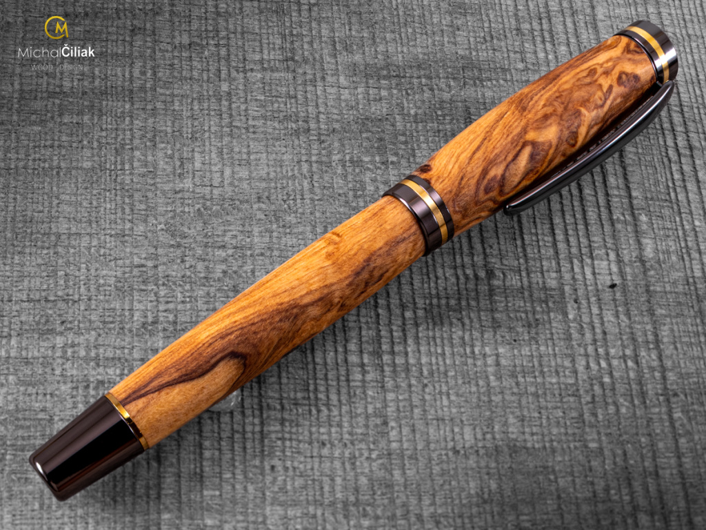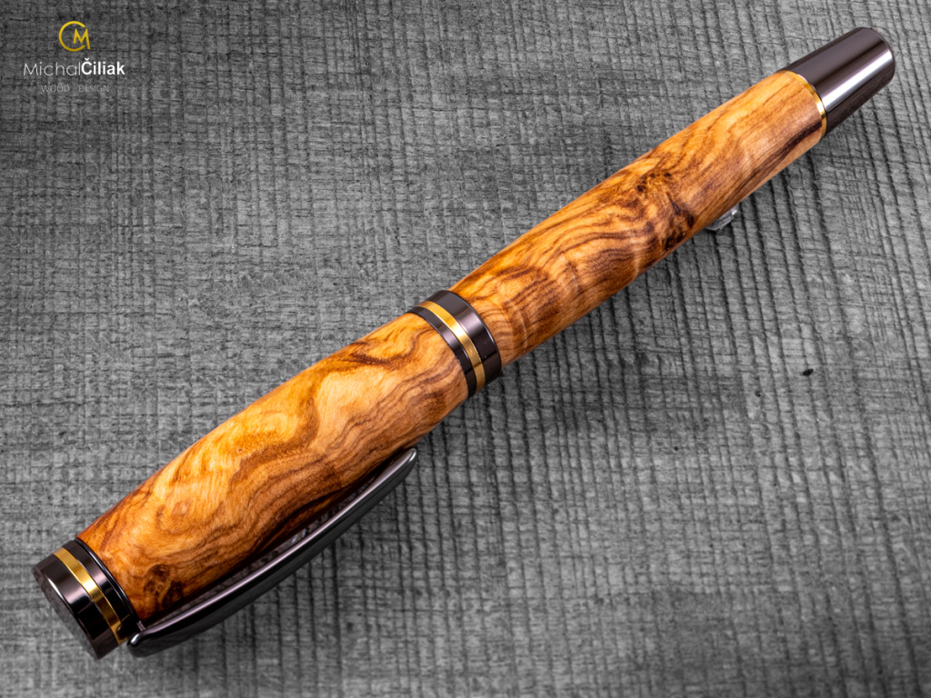 Dřevěné kuličkové pero Superior Olive tree & resin - Brilliance gunmetal gold