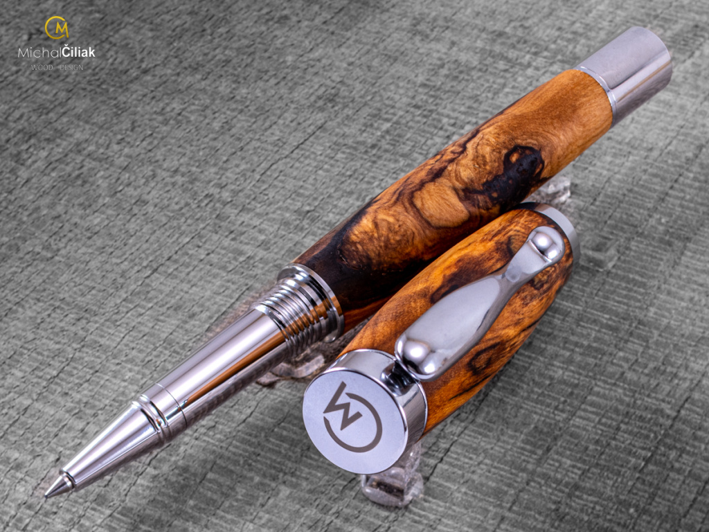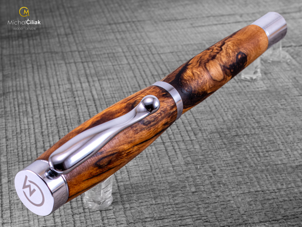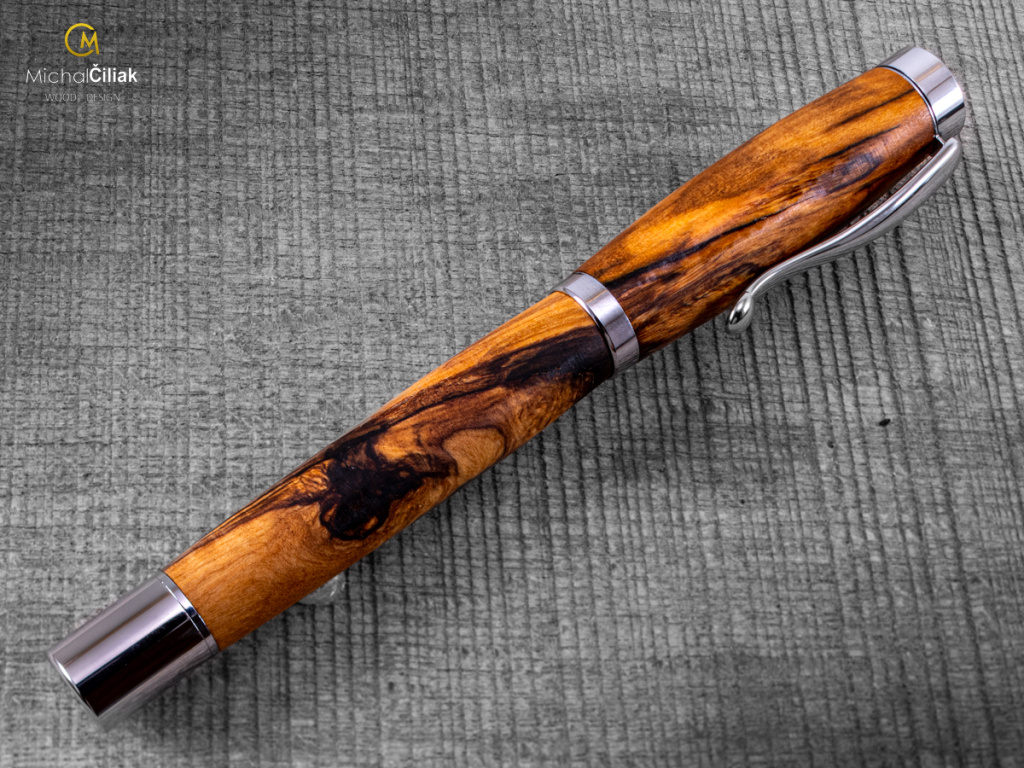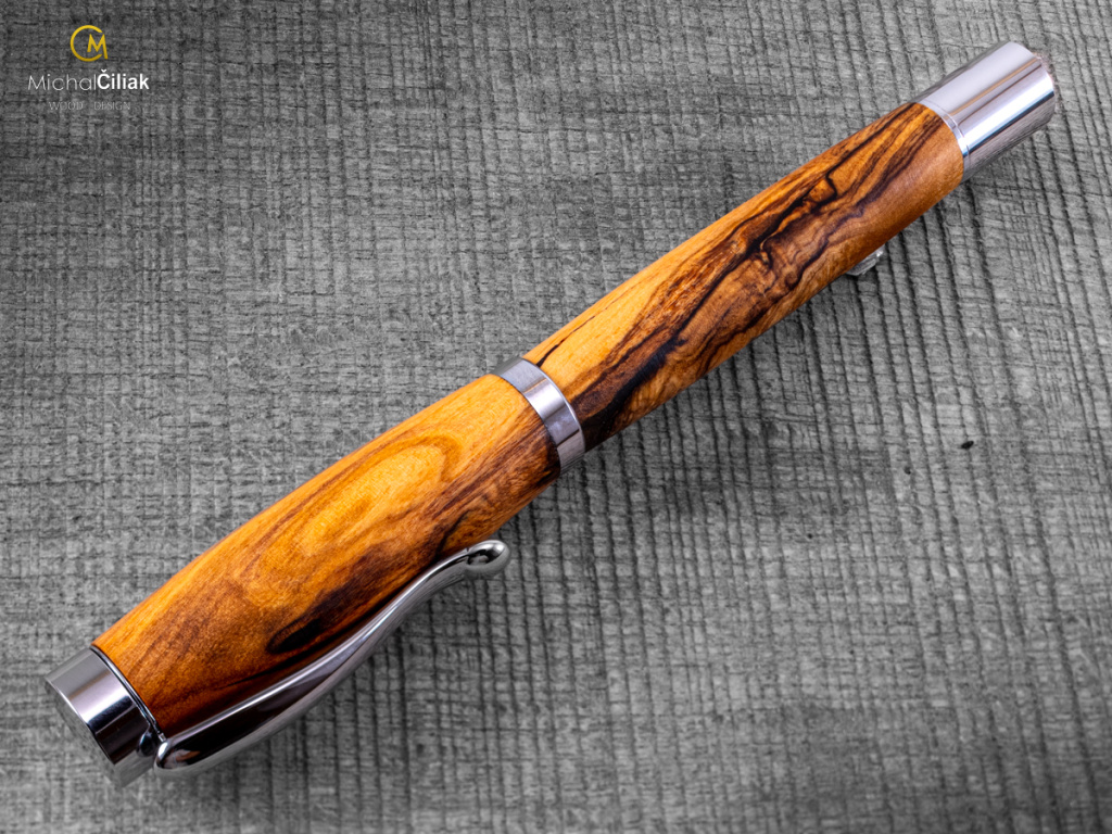 Ručně vyrobeno z barvené pryskyřice a prvotřídního olivového dřeva, které je pevné, velice odolné a má velmi zajímavé zbarvení od krémové přes růžovou až po černou. Osobně jsem ho dovezl z řeckého ostrova Karpathos, kde jsem jeho sháněním strávil téměř měsíc a půl. Nejdéle mi trvalo sehnat kontakt na místního farmáře, který mi prodal velké špalky olivového dřeva, jehož stáří odhadl na cca 700 let. Pomalý růst stromů způsobuje, že je dřevo velmi tvrdé, kmeny jsou rostlé velmi rozmanitě a díky tomu má olivovník úchvatnou kresbu. Proces spojení dřeva a pryskyřice je poměrně složitý, je potřeba vysušených popraskaných nebo jinak děravých kousků olivového dřeva, které se pak zalije speciální čirou pryskyřicí dobarvenou barvami. Po zalití je nutné z pryskyřice a dřeva dostat bublinky. Nastupuje proces, kdy se pryskyřice se dřevem vloží do tlakové nádoby a pomocí tlaku 6 bar se bublinky pomalu vytlačují na povrch. Nechá se finálně zatvrdnout a pak se celý bloček, naformátuje na malé hranoly, ze kterých následně soustružím tato nádherná a zajímavá pera. TIP! Pero s příběhem o tom, jak se v kopcích ostrova Karpathos našlo stovky let staré olivové dřevo, ze kterého jsem společně s místním truhlářem vyřezal výběrové kusy, převezl je do své dílny a vdechnul jim nový život. Podívejte se zde, jak tohle skvostné pero vznikalo. Budete s ním psát vaše vlastní příběhy, nebo ho někomu věnujete jako opravdu originální dárek?