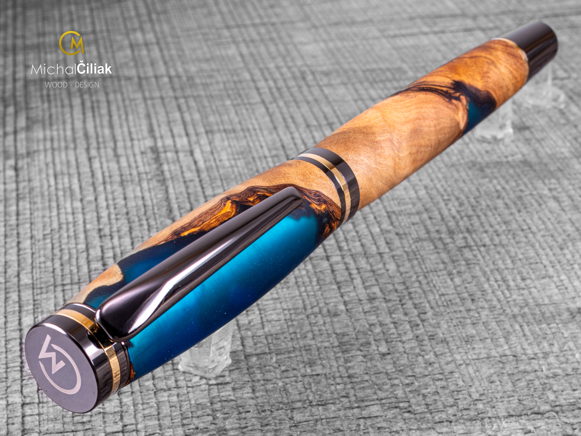 Pero z olivového dřeva stabilizovaného pryskyřicí je jedinečný ručně vyráběný dárek, který spojuje přírodu, moderní design a skutečné řemeslo.