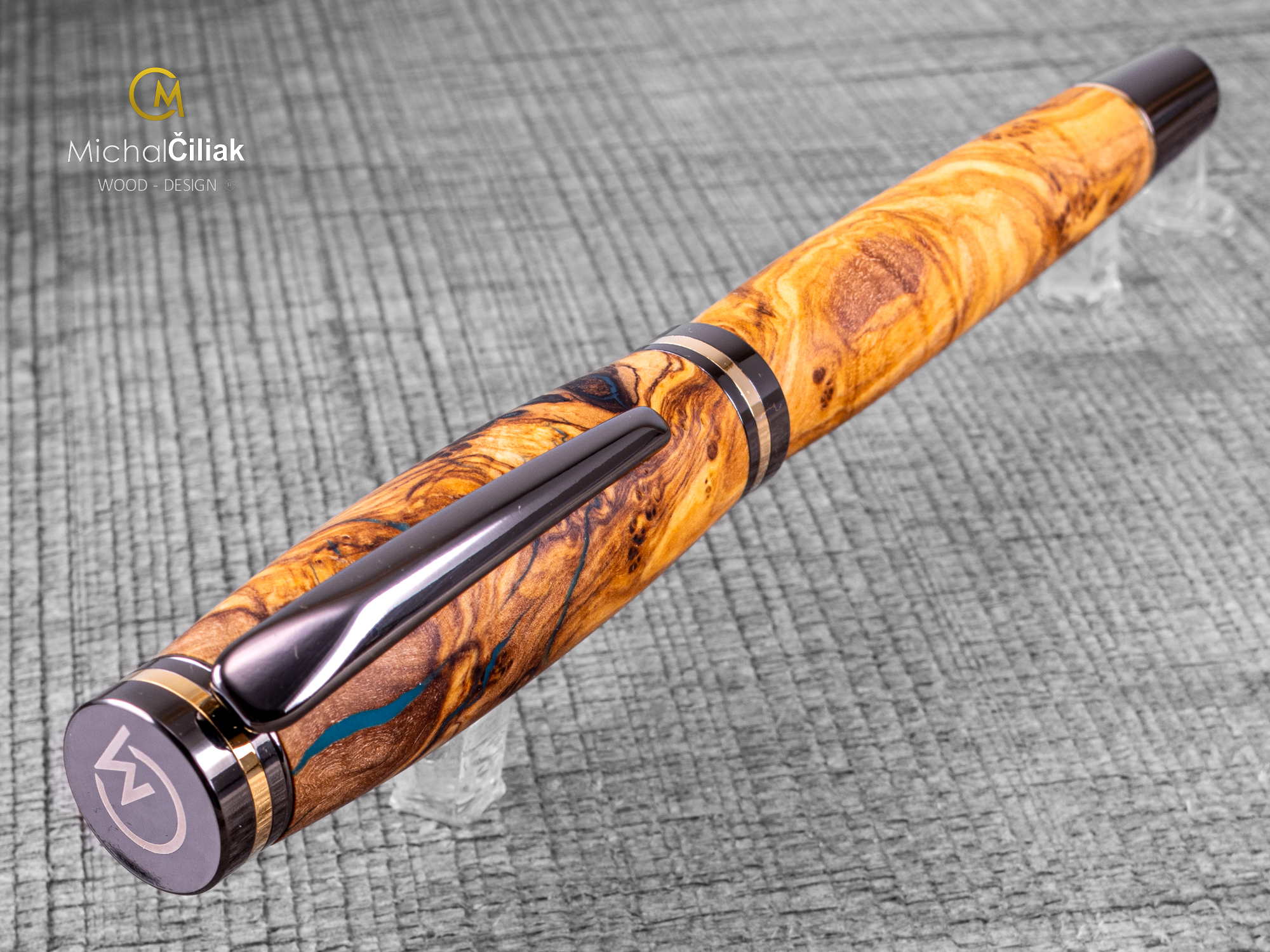 Ručně vyrobeno z olivovníku a barvené pryskyřice - Varianta Brilliance s kovovými komponenty barvy gunmetal gold