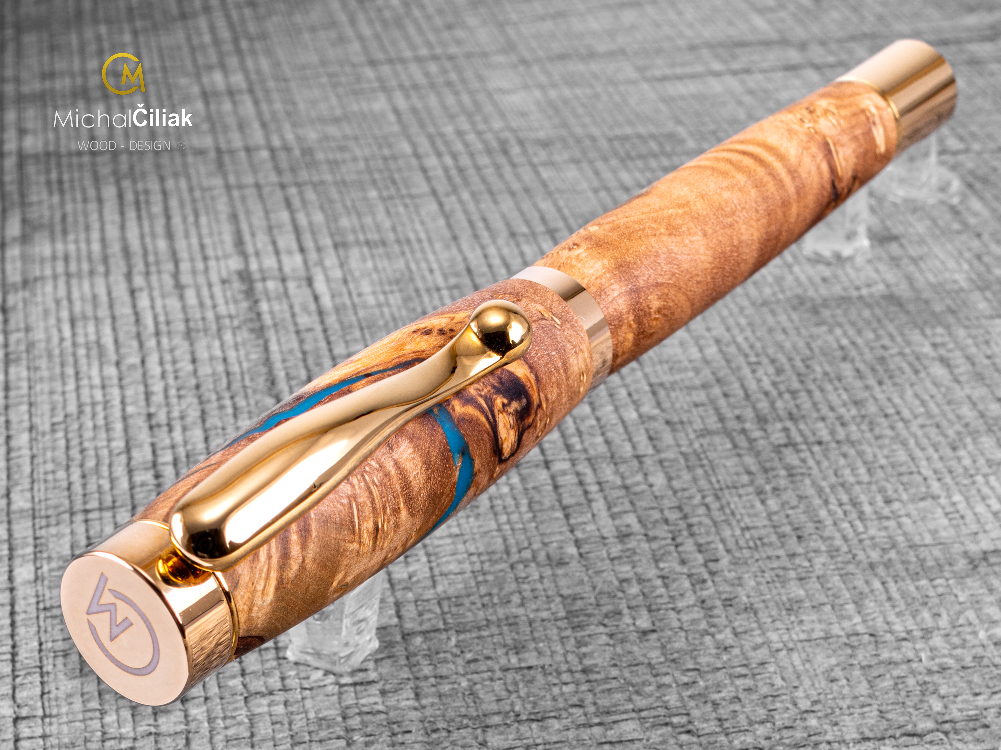 Pero z olivového dřeva stabilizovaného pryskyřicí je jedinečný ručně vyráběný dárek, který spojuje přírodu, moderní design a skutečné řemeslo.