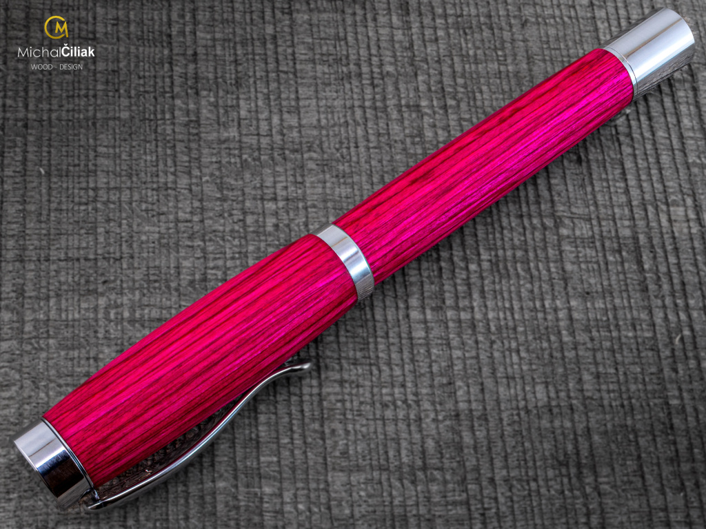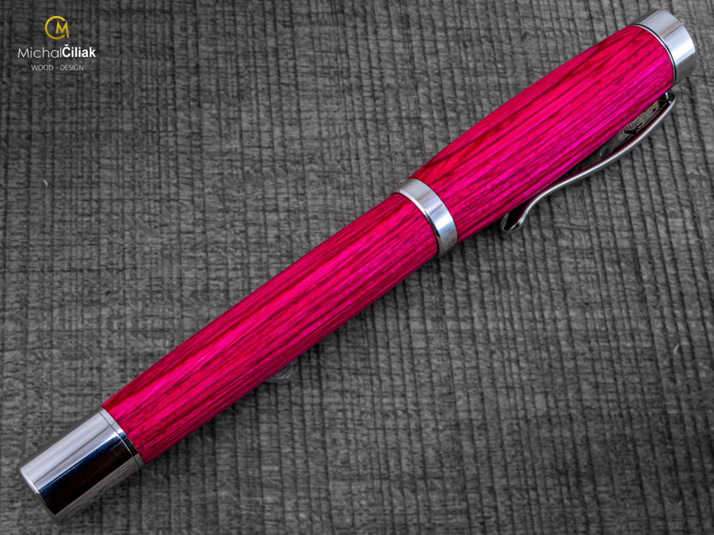 Pero je vyrobené z barvené dýhy, která je barvena postupně po jednotlivých vrstvách a ty jsou pak slepeny k sobě. Dá se ta dosáhnout velmi zajímavé struktury dřeva a vznikne tak opravdu originální kousek, který se jen tak nevidí. S perem z dýhy určitě okouzlíte, protože barva dřeva sice není vyloženě přírodní, za to ale opravdu nevšední a výjimečná.