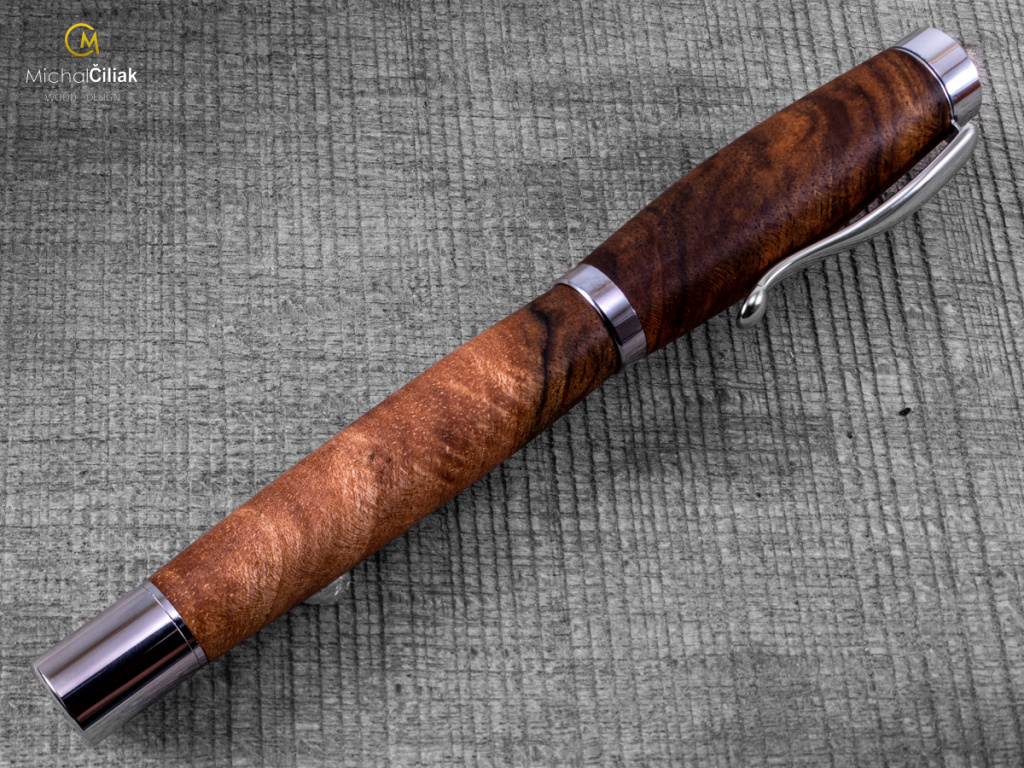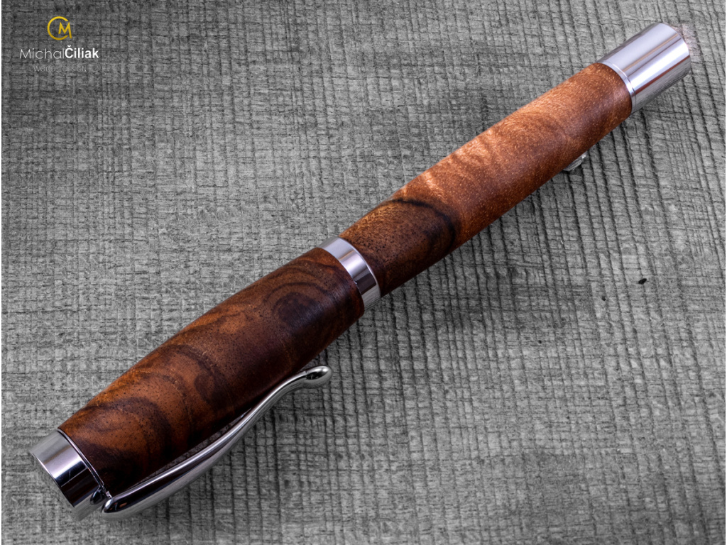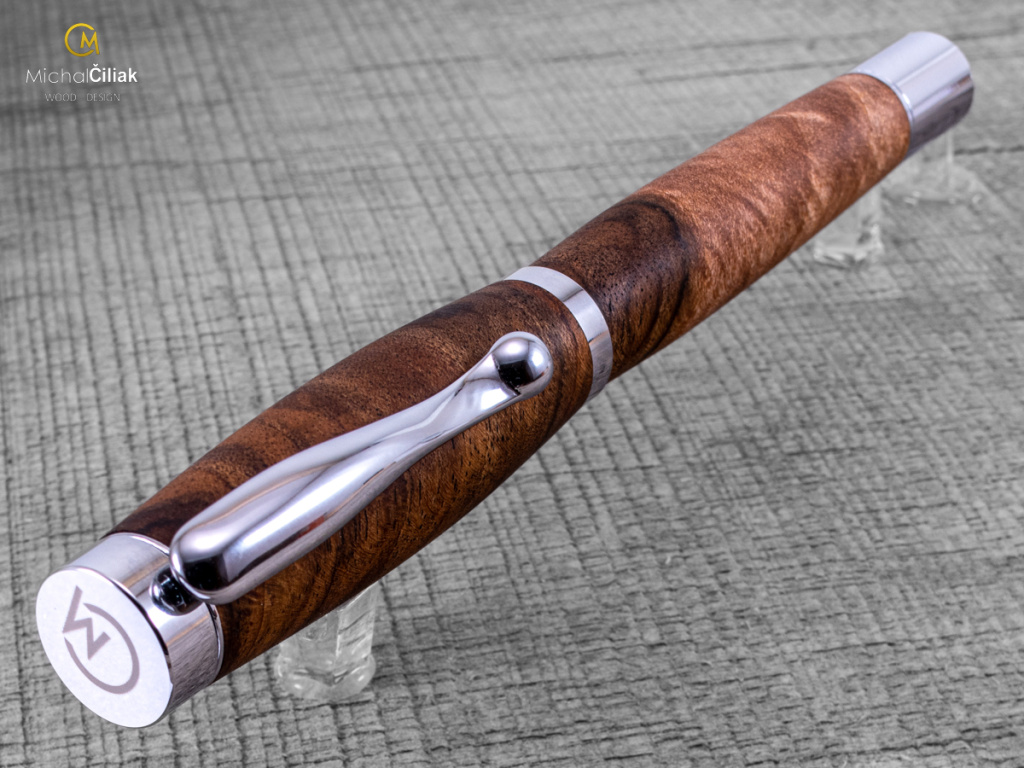 Ručně vyrobeno z českého ořechového dřeva, které vyniká svou elegancí a je vysoce ceněné. Pero je vyrobeno z jádrové části dřeva, která má tmavě hnědou až černou barvu s nezaměnitelnou texturou.
