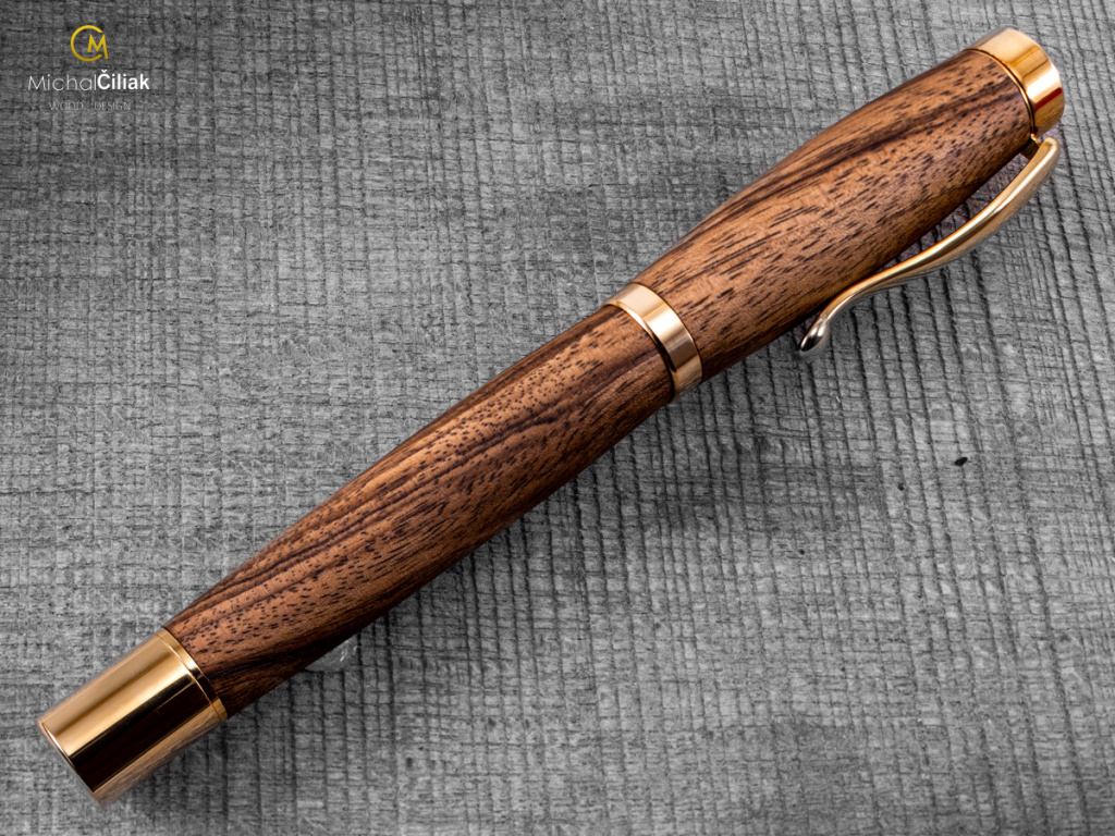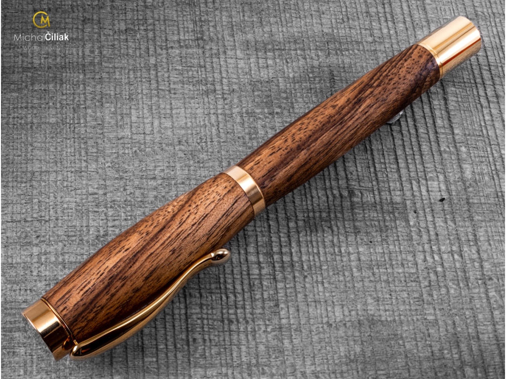 Ručně vyrobeno z českého ořechového dřeva, které vyniká svou elegancí a je vysoce ceněné. Pero je vyrobeno z jádrové části dřeva, která má tmavě hnědou až černou barvu s nezaměnitelnou texturou.