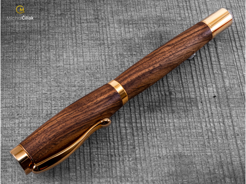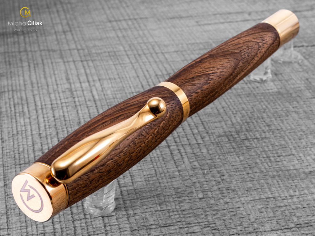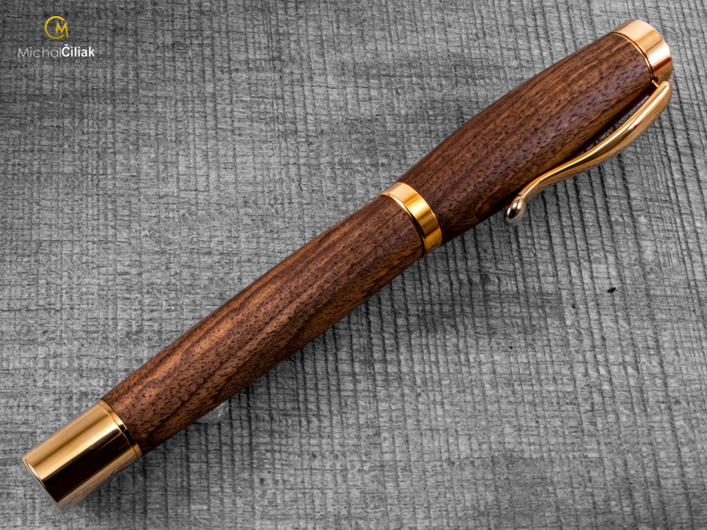Ručně vyrobeno z českého ořechového dřeva, které vyniká svou elegancí a je vysoce ceněné. Pero je vyrobeno z jádrové části dřeva, která má tmavě hnědou až černou barvu s nezaměnitelnou texturou.
