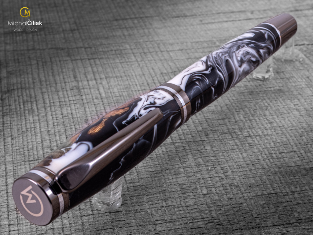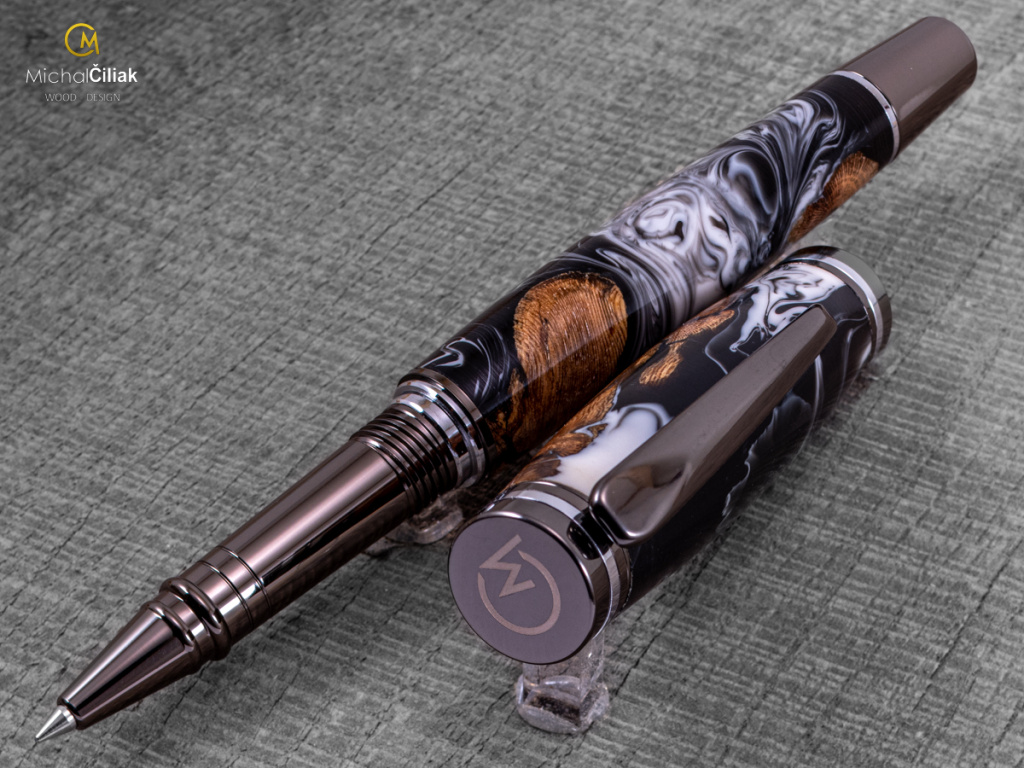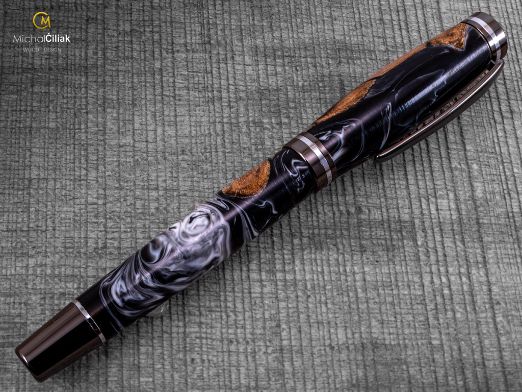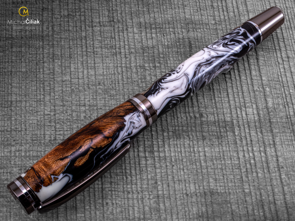 Ručně vyrobeno ze dřeva vinné révy a barvené pryskyřice - varianta Brilliance s kovovými komponenty barvy gunmetal chrome