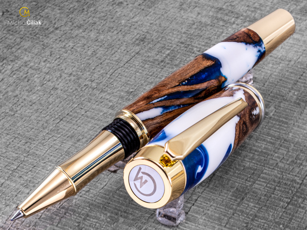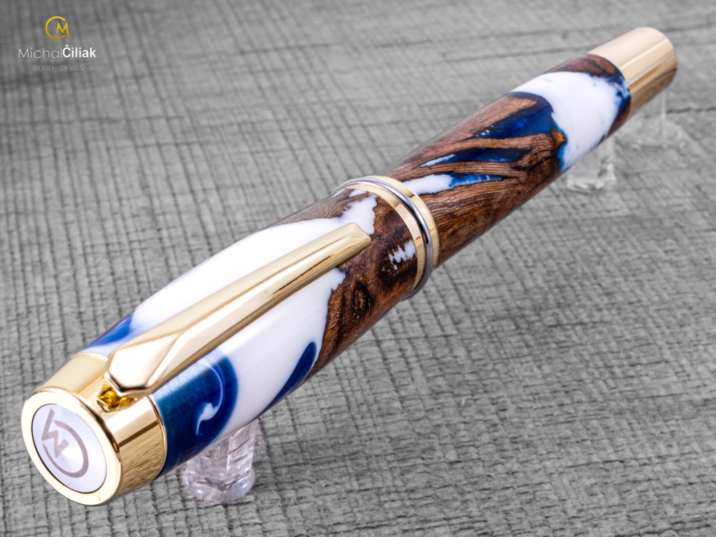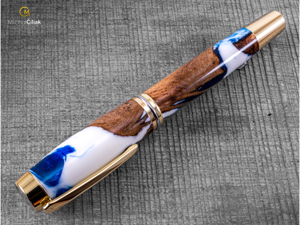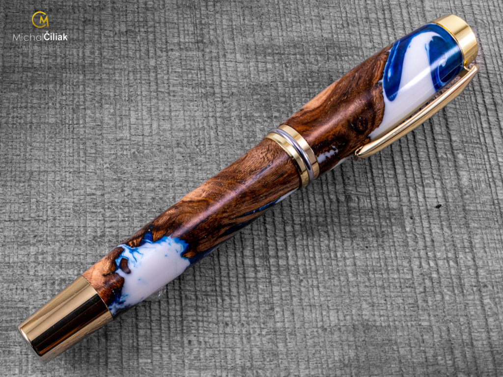 Dřevěné kuličkové pero Superior White & Blue Wine - Burly gold