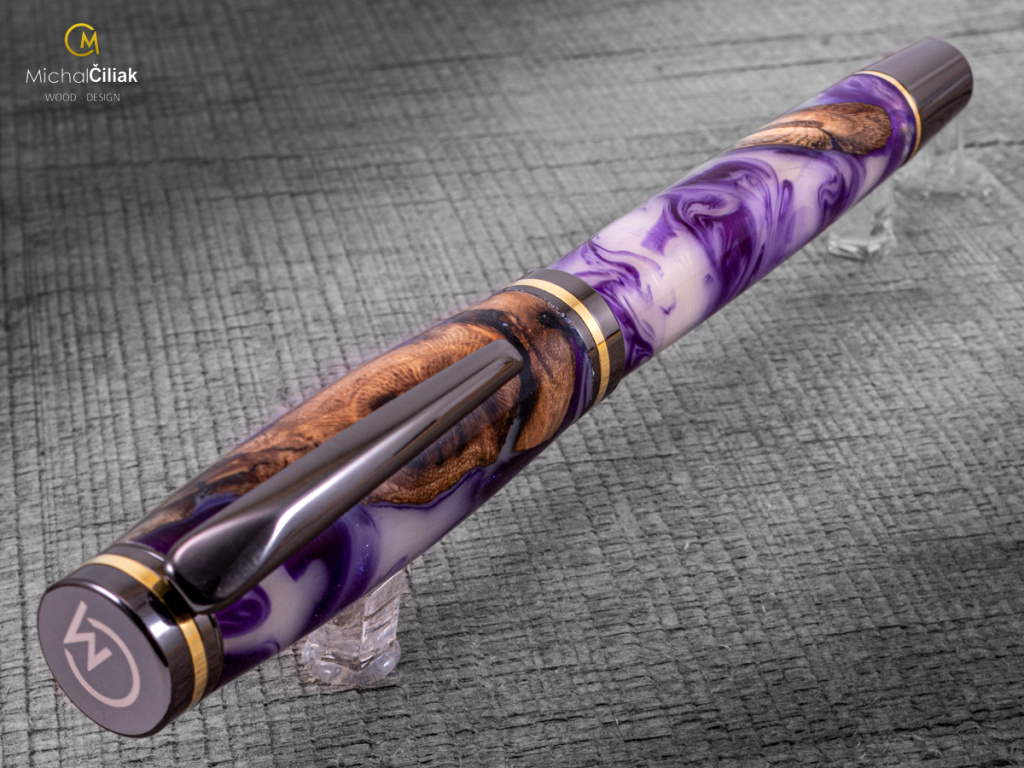 _Dřevěné kuličkové pero Superior White & Violet Wine - Brilliance gunmetal gold