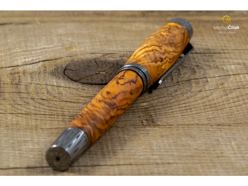 Pero z damaškové oceli od Michala Čiliaka představuje to nejlepší, co pod značkou Michal Čiliak WOOD-DESIGN dosud vzniklo. Proces výroby per, který se přibližuje až posvátnému obřadu, začíná výběrem toho nejkvalitnějšího dřeva, stejně jako dalších komponent a materiálů. Pro svou zatím nejluxusnější sérii se Michal rozhodl použít damaškovou ocel.
