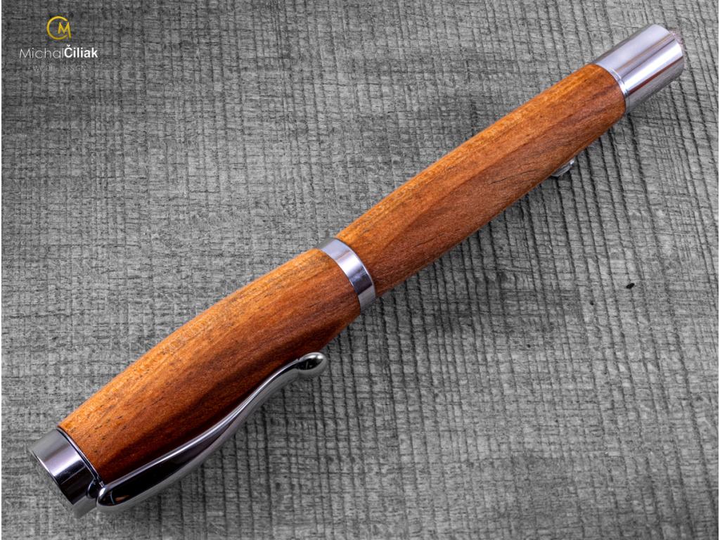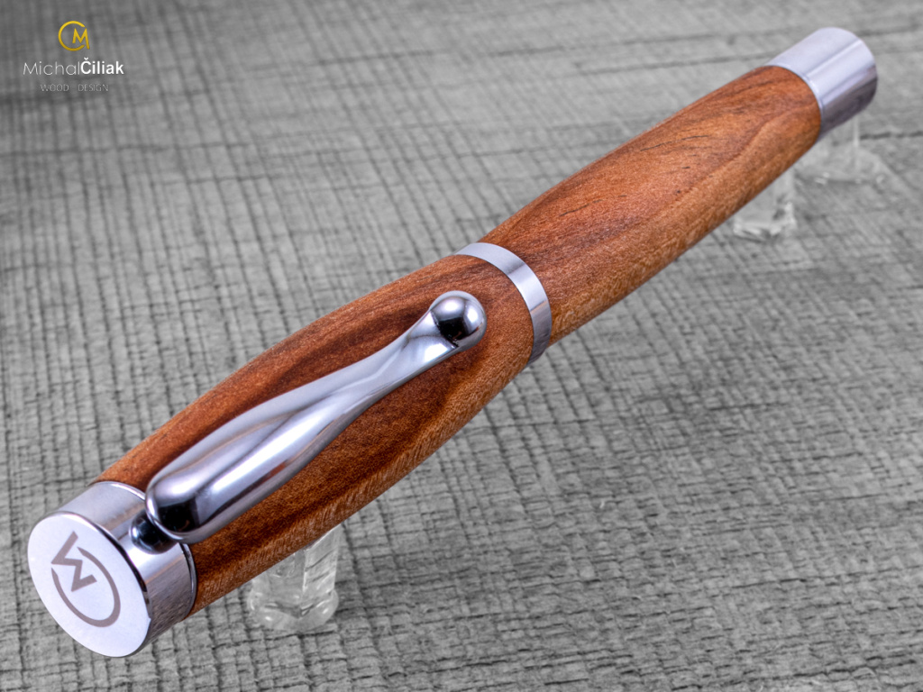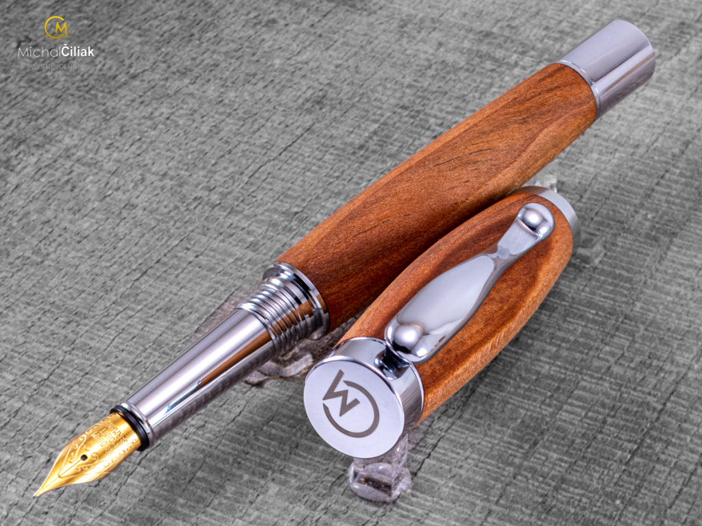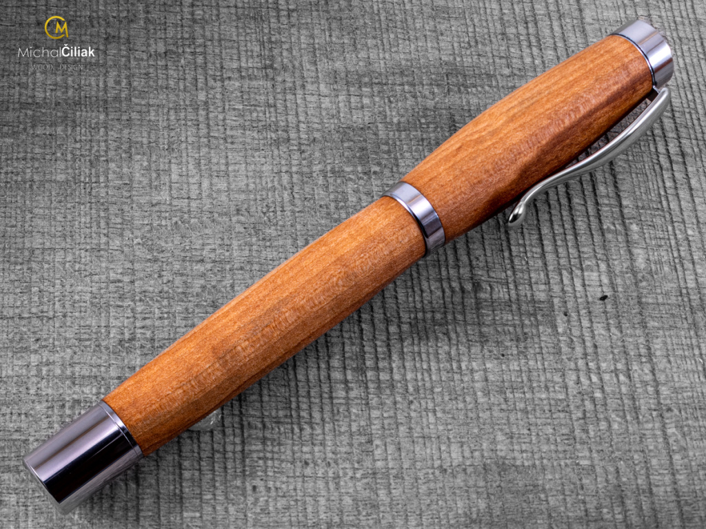 Ručně vyrobeno z českého jabloňového dřeva, jehož jádro - ze kterého je pero vyrobeno - má světle až tmavě hnědou barvu s výraznější kresbou s barevnými kontrasty. Kombinace tmavě a světle hnědé barvy dělá z pera velkého elegána s potřebnou dávkou výraznosti.
