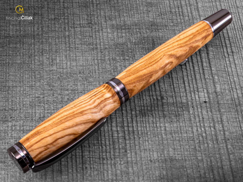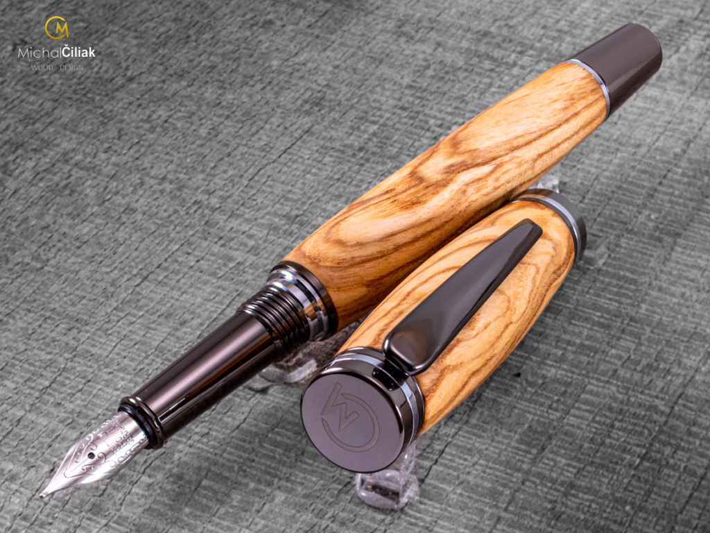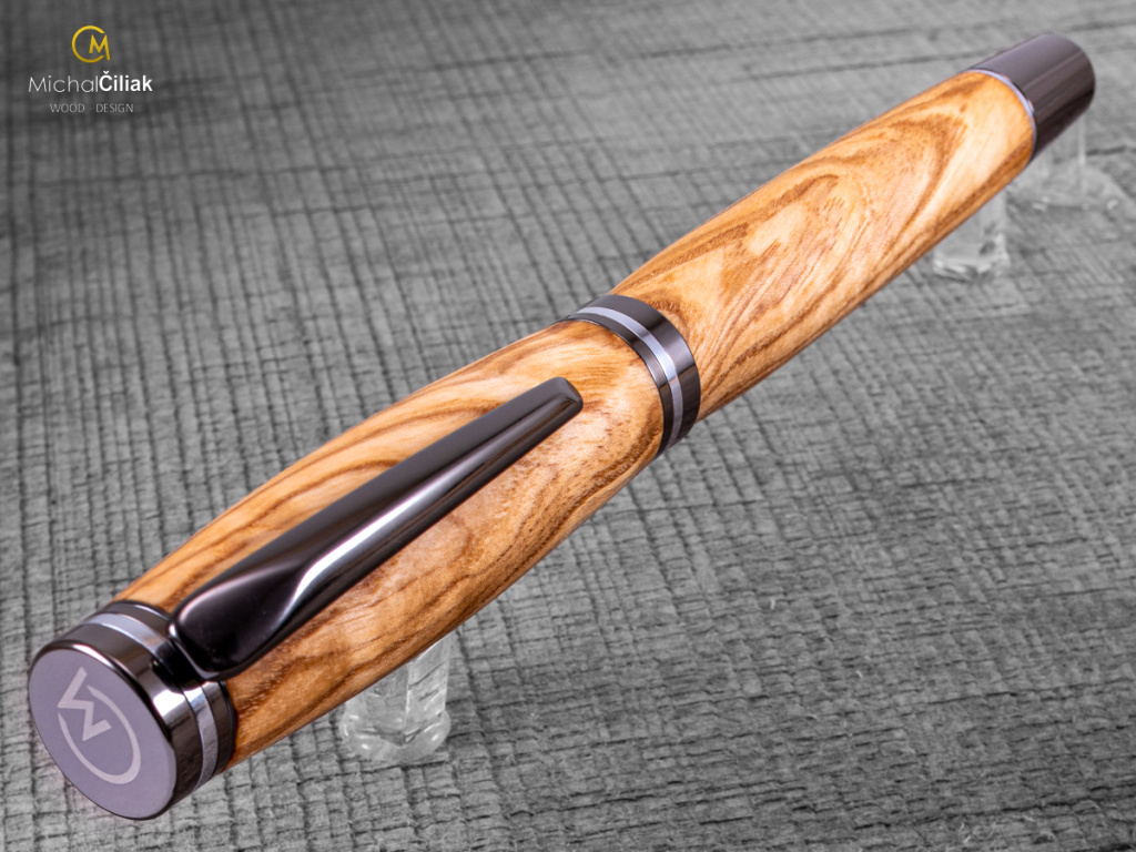 Ručně vyrobeno z českého jasanu, jehož dřevo je tvrdé a zároveň velmi pružné, patří k nejpružnějším českým dřevinám. Jádro jasanu je světle hnědé a má velmi výrazné letokruhy. Z tohoto důvodu je výběr dřeva velmi důležitý, protože některé kusy jasanového dřeva mají letokruhy hodně zajímavě tvarované a toto pero je toho důkazem. Vypadá až uměle, ale věřte, že jeho dřevo je dílem přírody.