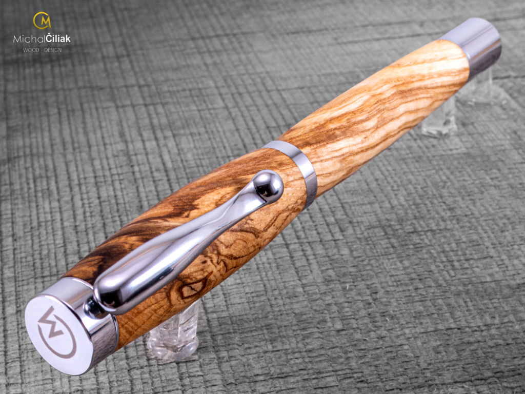 Ručně vyrobeno z českého jasanu, jehož dřevo je tvrdé a zároveň velmi pružné, patří k nejpružnějším českým dřevinám. Jádro jasanu je světle hnědé a má velmi výrazné letokruhy. Z tohoto důvodu je výběr dřeva velmi důležitý, protože některé kusy jasanového dřeva mají letokruhy hodně zajímavě tvarované a toto pero je toho důkazem. Vypadá až uměle, ale věřte, že jeho dřevo je dílem přírody.