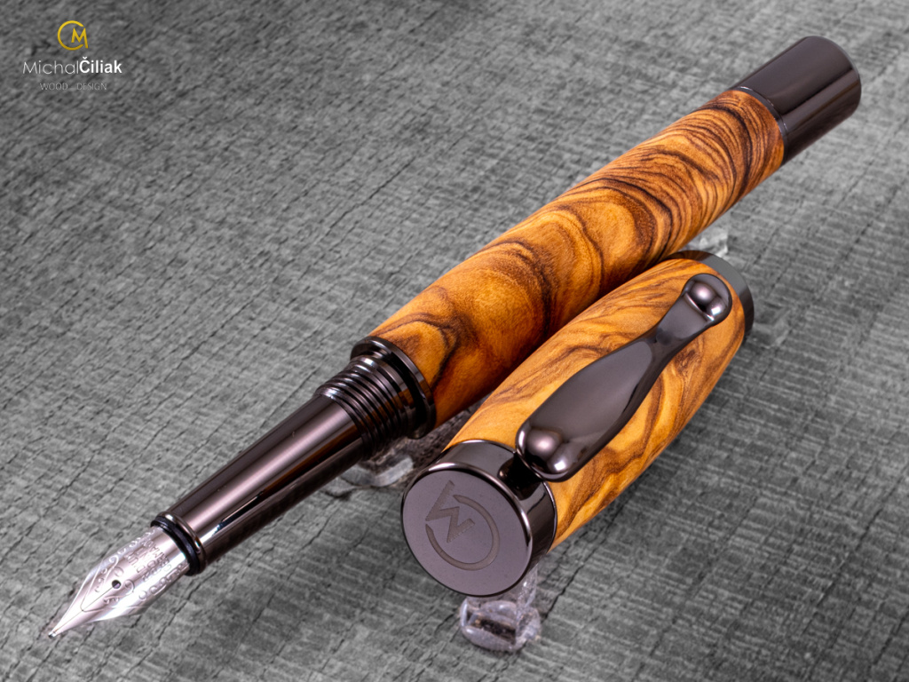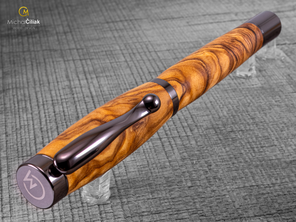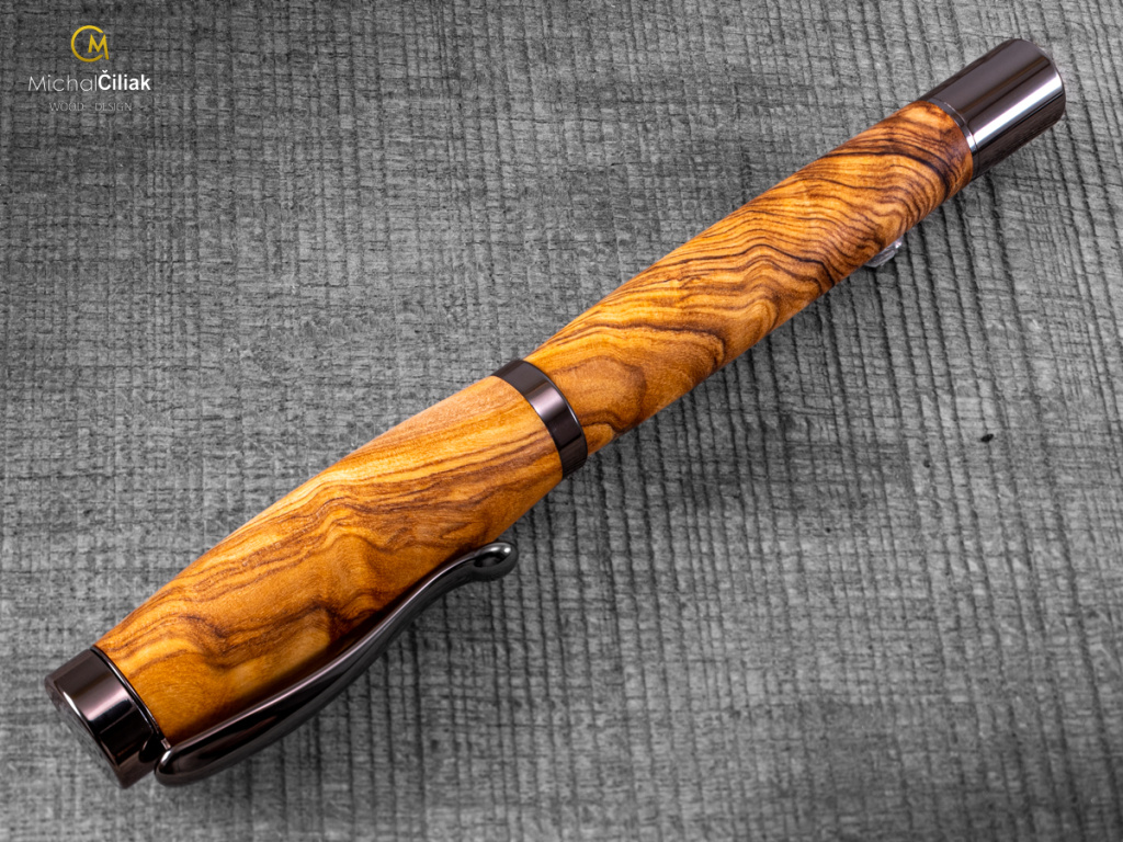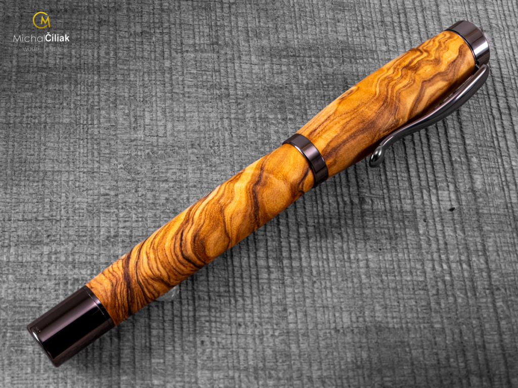 Ručně vyrobeno z barvené pryskyřice a prvotřídního olivového dřeva, které je pevné, velice odolné a má velmi zajímavé zbarvení od krémové přes růžovou až po černou. Osobně jsem ho dovezl z řeckého ostrova Karpathos, kde jsem jeho sháněním strávil téměř měsíc a půl. Nejdéle mi trvalo sehnat kontakt na místního farmáře, který mi prodal velké špalky olivového dřeva, jehož stáří odhadl na cca 700 let. Pomalý růst stromů způsobuje, že je dřevo velmi tvrdé, kmeny jsou rostlé velmi rozmanitě a díky tomu má olivovník úchvatnou kresbu. Proces spojení dřeva a pryskyřice je poměrně složitý, je potřeba vysušených popraskaných nebo jinak děravých kousků olivového dřeva, které se pak zalije speciální čirou pryskyřicí dobarvenou barvami. Po zalití je nutné z pryskyřice a dřeva dostat bublinky. Nastupuje proces, kdy se pryskyřice se dřevem vloží do tlakové nádoby a pomocí tlaku 6 bar se bublinky pomalu vytlačují na povrch. Nechá se finálně zatvrdnout a pak se celý bloček, naformátuje na malé hranoly, ze kterých následně soustružím tato nádherná a zajímavá pera. TIP! Pero s příběhem o tom, jak se v kopcích ostrova Karpathos našlo stovky let staré olivové dřevo, ze kterého jsem společně s místním truhlářem vyřezal výběrové kusy, převezl je do své dílny a vdechnul jim nový život. Podívejte se zde, jak tohle skvostné pero vznikalo. Budete s ním psát vaše vlastní příběhy, nebo ho někomu věnujete jako opravdu originální dárek?