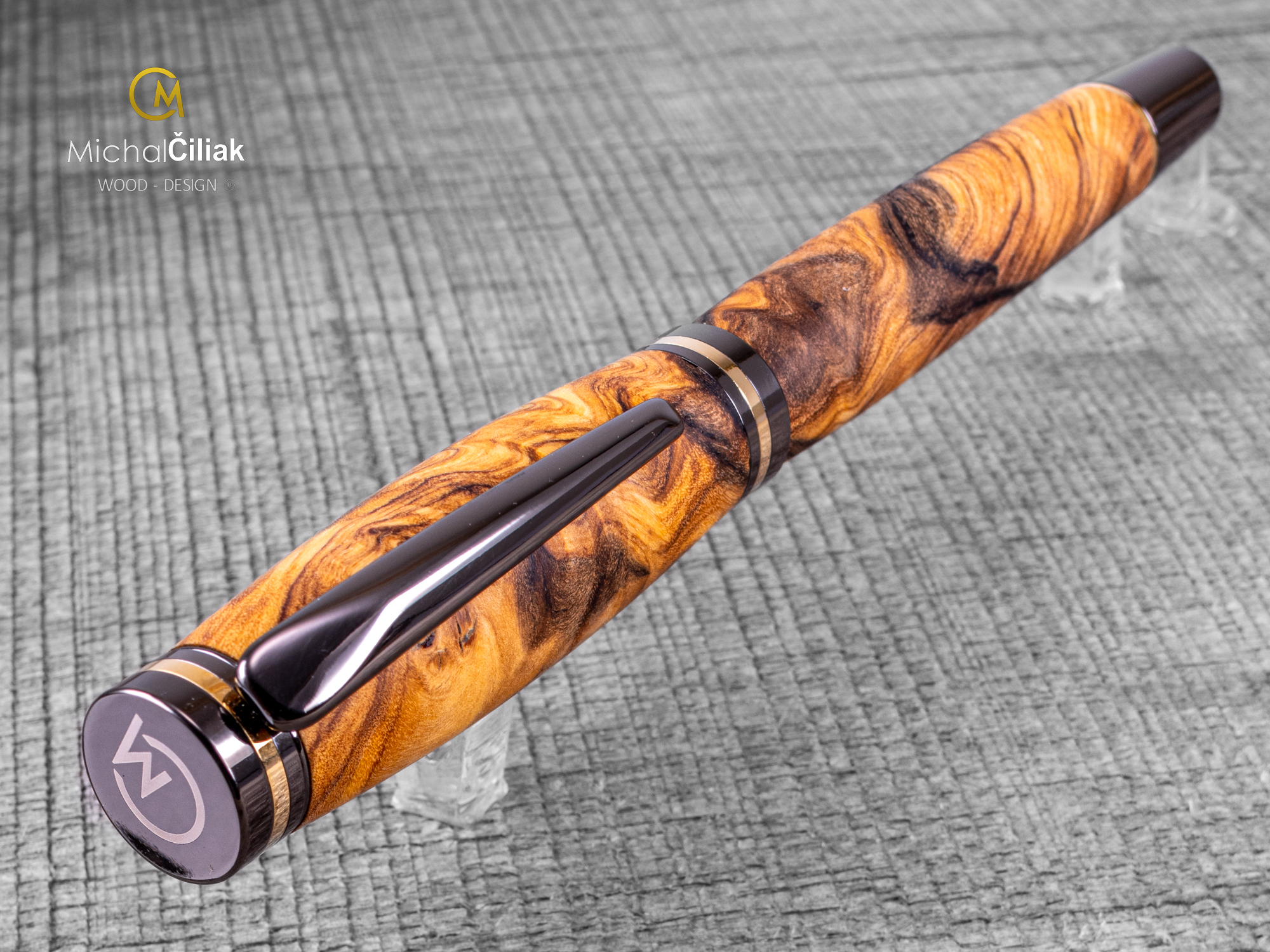 Pero z olivového dřeva stabilizovaného pryskyřicí je jedinečný ručně vyráběný dárek, který spojuje přírodu, moderní design a skutečné řemeslo.