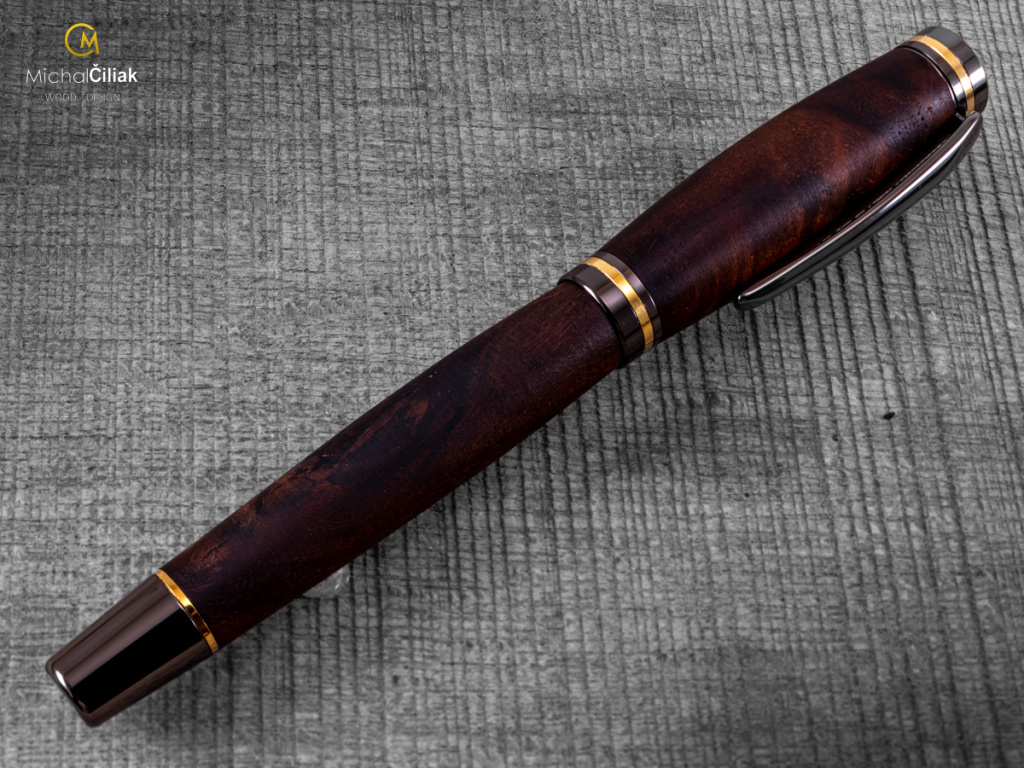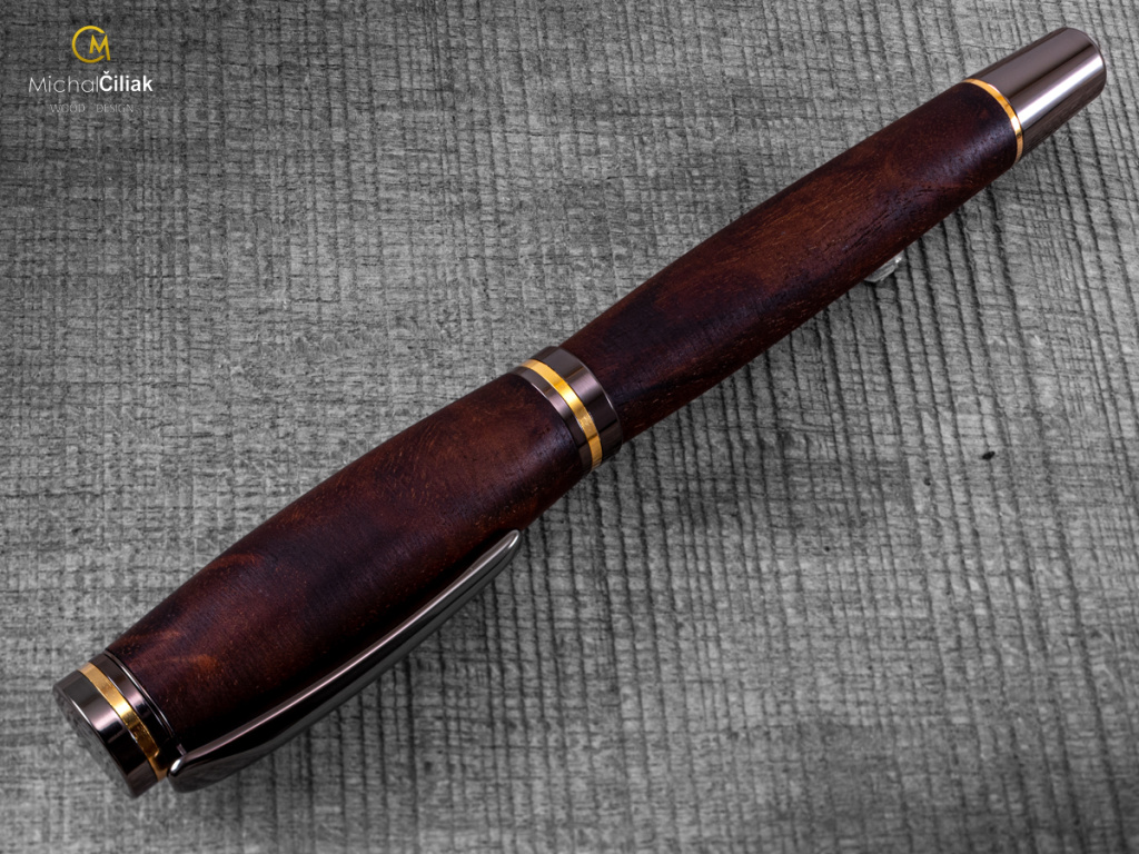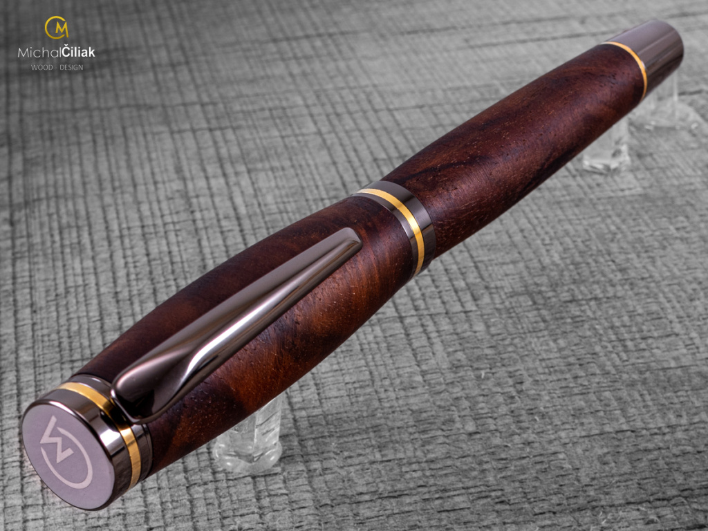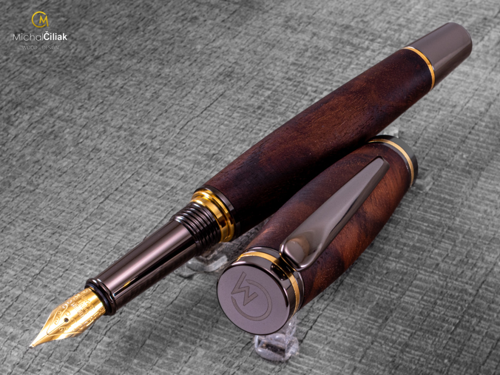 Ručně vyrobeno z českého ořechového dřeva, které vyniká svou elegancí a je vysoce ceněné. Pero je vyrobeno z jádrové části dřeva, která má tmavě hnědou až černou barvu s nezaměnitelnou texturou.