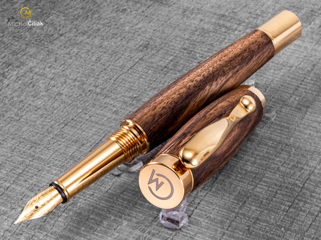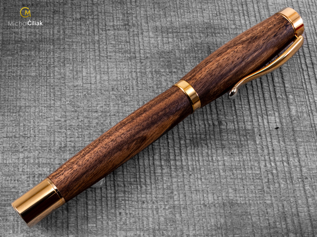 Ručně vyrobeno z českého ořechového dřeva, které vyniká svou elegancí a je vysoce ceněné. Pero je vyrobeno z jádrové části dřeva, která má tmavě hnědou až černou barvu s nezaměnitelnou texturou.