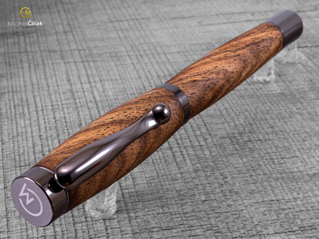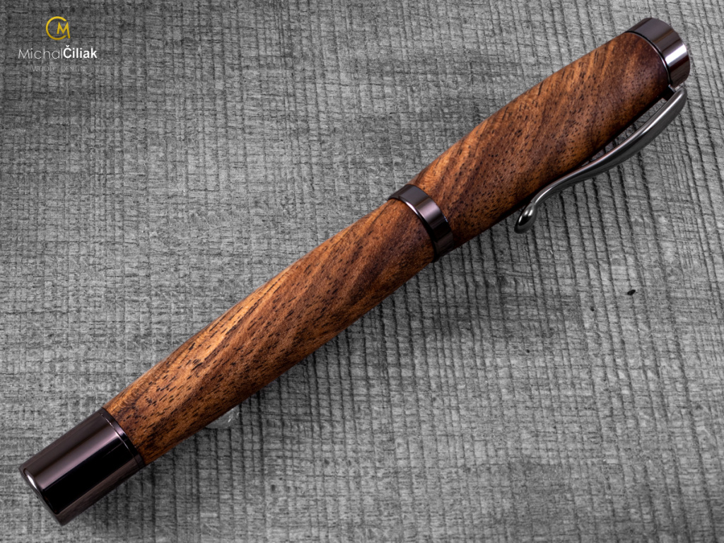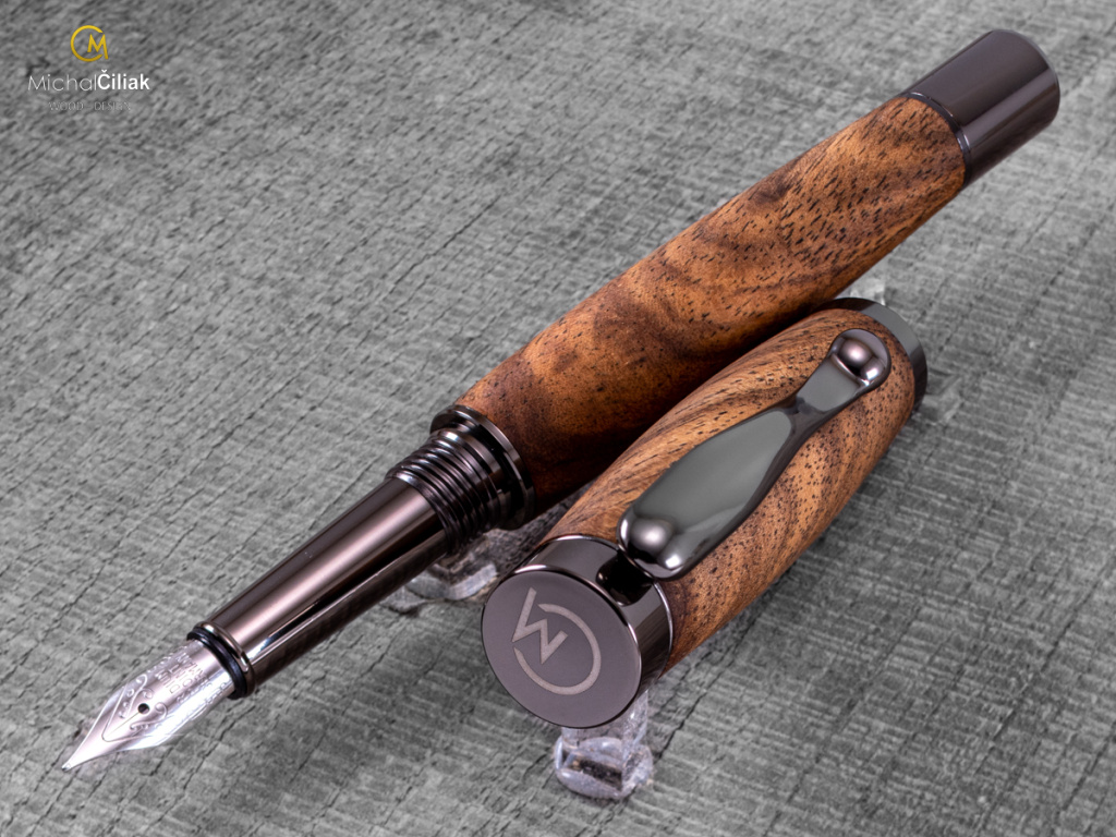 Ručně vyrobeno z českého ořechového dřeva, které vyniká svou elegancí a je vysoce ceněné. Pero je vyrobeno z jádrové části dřeva, která má tmavě hnědou až černou barvu s nezaměnitelnou texturou.