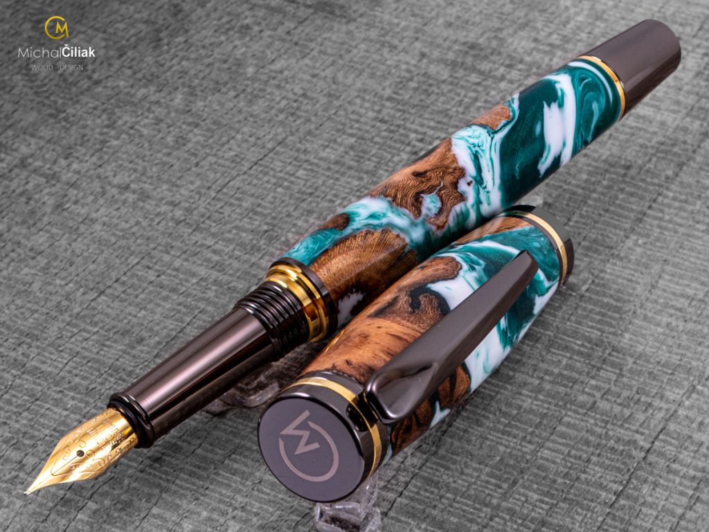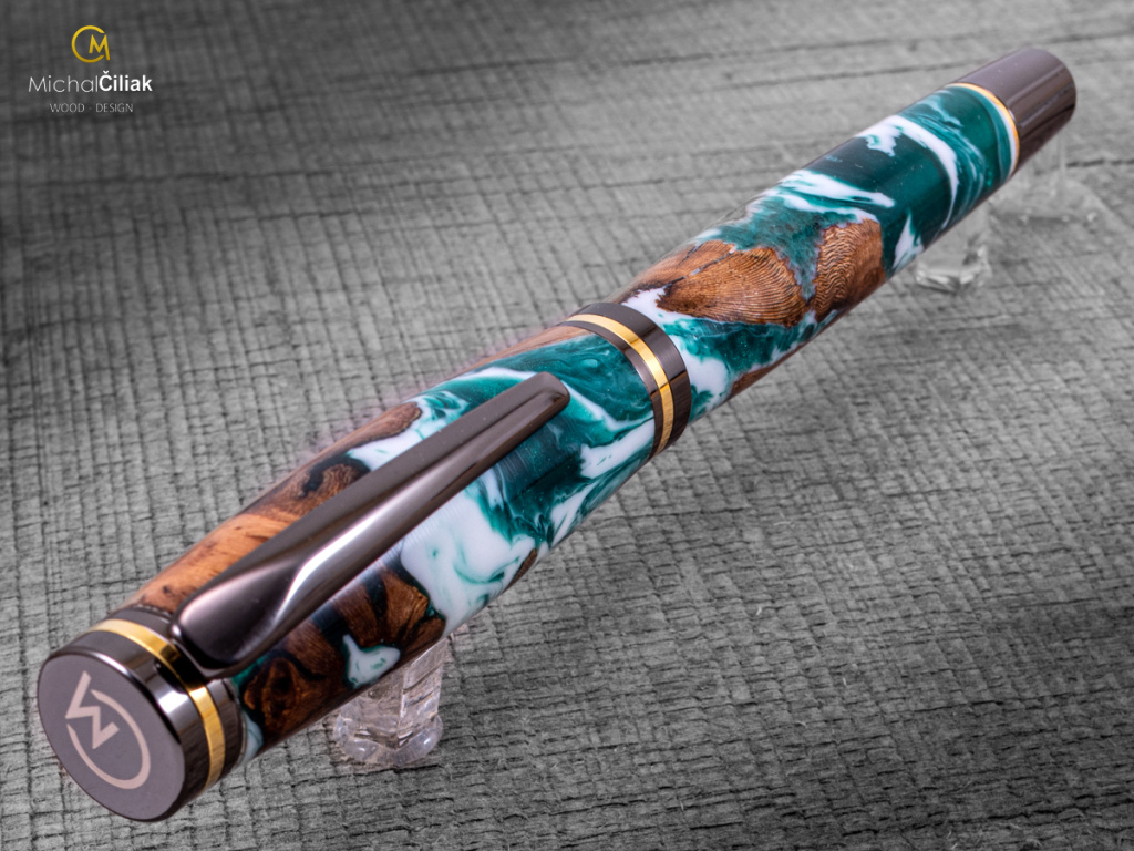 Dřevěné plnící pero Superior White & Green Wine - Brilliance gunmetal gold