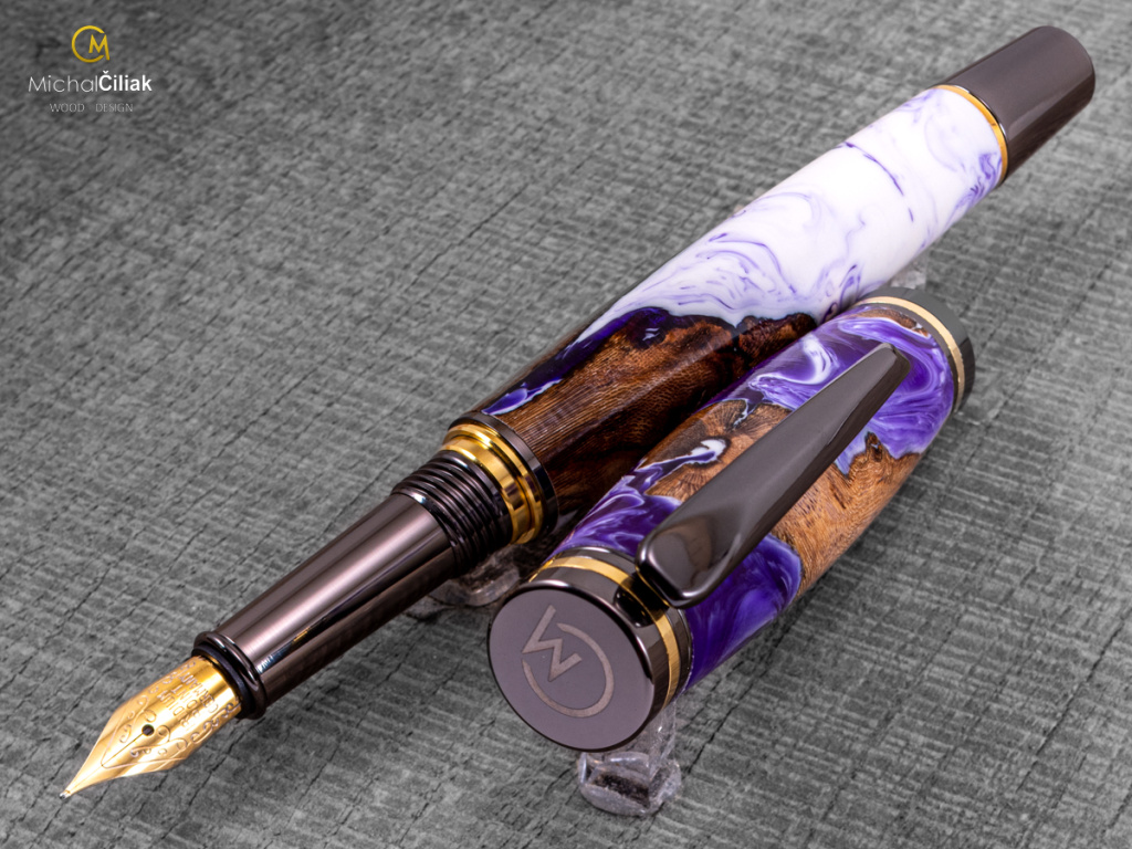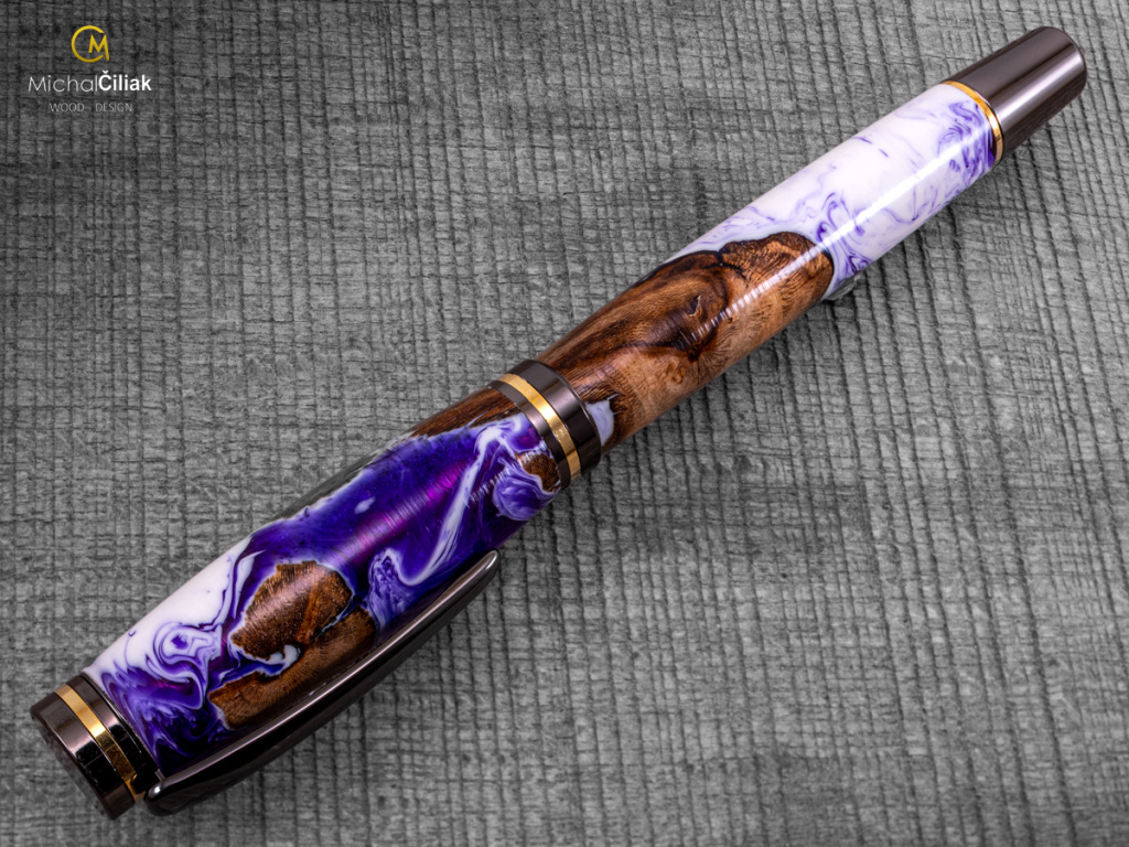 Dřevěné plnící pero Superior White & Violet Wine - Brilliance gunmetal gold