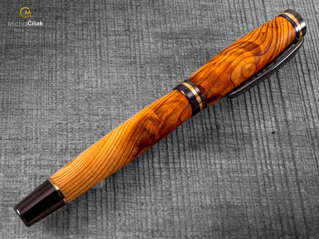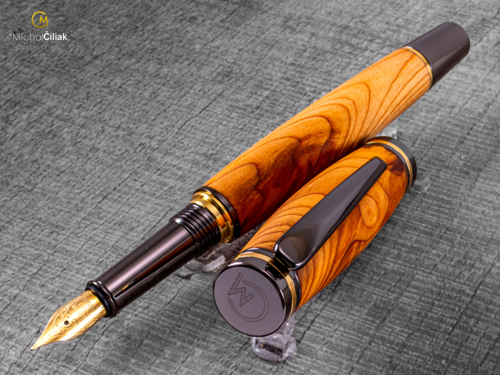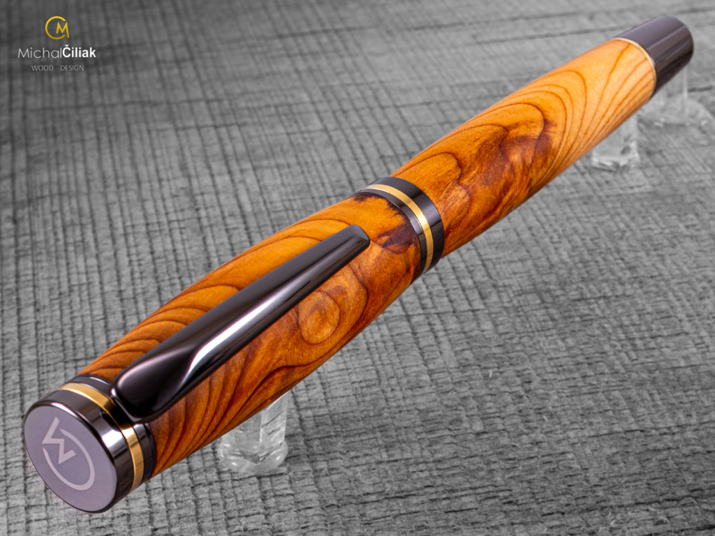 Ručně vyrobeno ze vzácného tisu, který patří mezi nejtvrdší evropské jehličnany. Jeho dřevo je zbarvené do červenooranžova a má velice výrazné letokruhy, jež vytváří krásnou kresbu. Aby vypadalo zajímavě i pero z tohoto dřeva, musí se důkladně hledat a provést řádná selekce dřeva. Tak vznikl i tento exkluzivní kus.