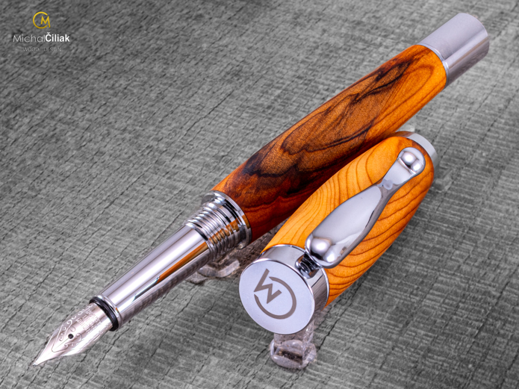 Dřevěné plnící pero Superior Yew Tree - Elegant chrome