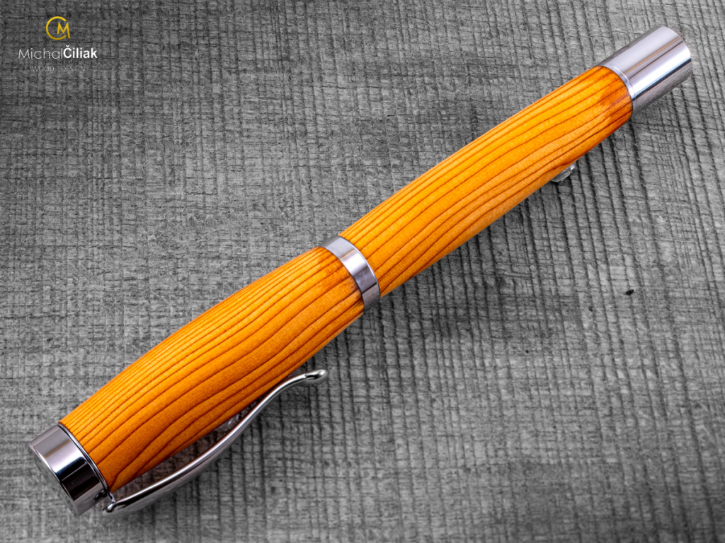 Ručně vyrobeno ze vzácného tisu, který patří mezi nejtvrdší evropské jehličnany. Jeho dřevo je zbarvené do červenooranžova a má velice výrazné letokruhy, jež vytváří krásnou kresbu. Aby vypadalo zajímavě i pero z tohoto dřeva, musí se důkladně hledat a provést řádná selekce dřeva. Tak vznikl i tento exkluzivní kus.