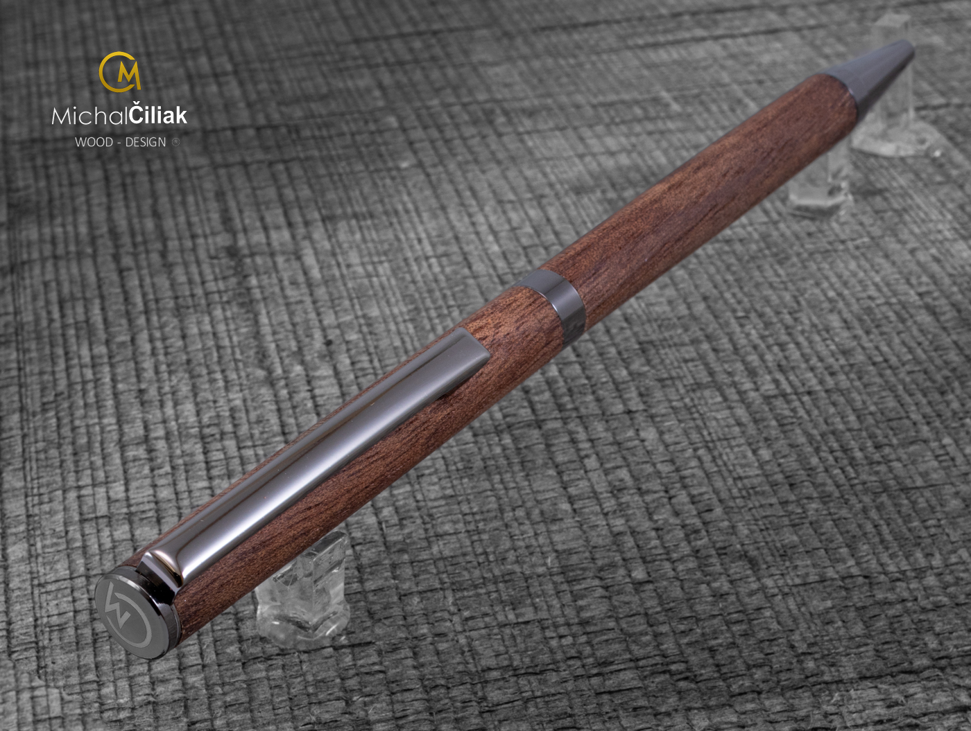 Ručne vyrábané luxusné drevené pero z amerického orecha je známe svojou tmavou farbou a pokojnou, elegantnou kresbou dreva. Tento materiál pôsobí profesionálne, seriózne a nadčasovo, vďaka čomu je obľúbenou voľbou na každodenné používanie aj reprezentáciu.