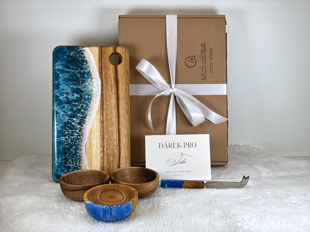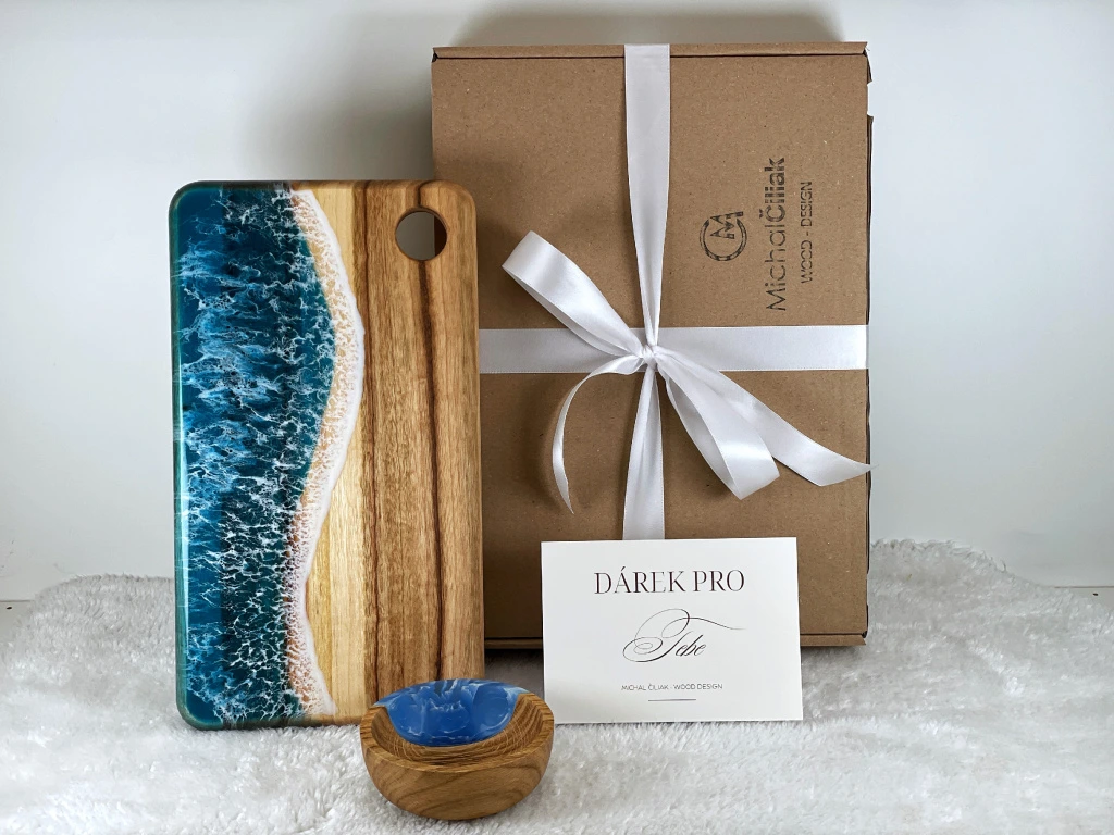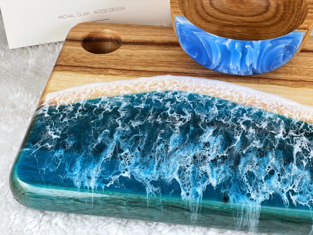 - Originálny umelecký kúsok: Každá doska je úplný unikát. Nielen vďaka rozmanitej štruktúre dreva, ale aj vďaka jedinečnému dizajnu vytvorenému zo živice.